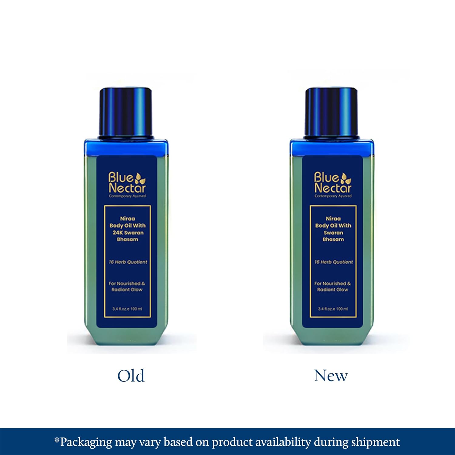 Blue Nectar Body Oil with Swaran Bhasam for Glowing Skin | Ayurvedic Body Oil for Dry Skin | Nourishing Oil with Gold & Shimmer (16 Herbs, 3.38 Fl Oz)