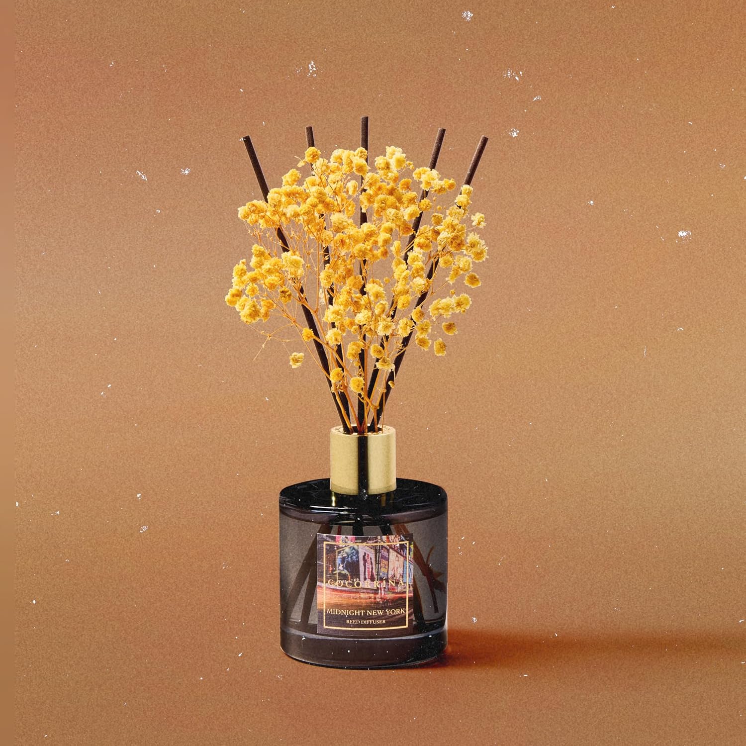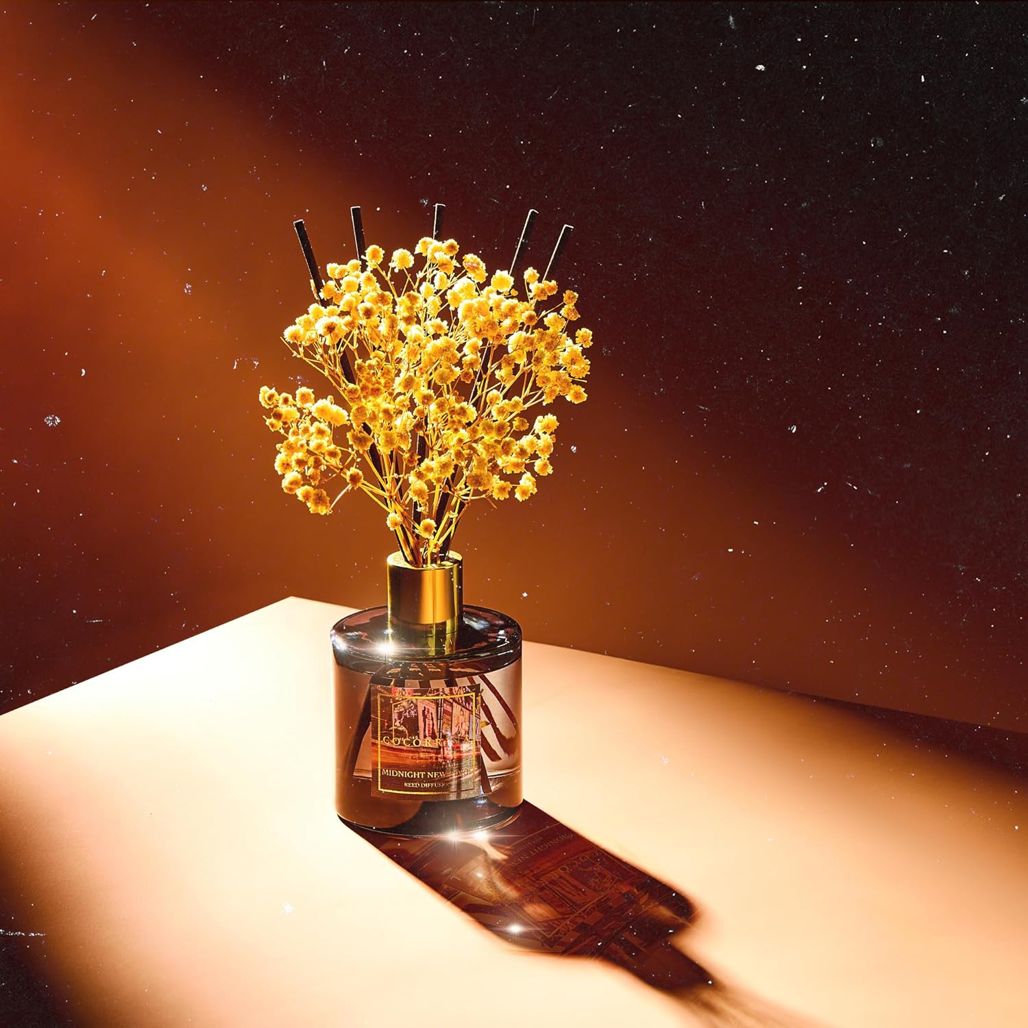 COCORRÍNA Reed Diffuser - Midnight New York 6.7 Fl.oz Reed Diffuser Set with 8 Sticks & Preserved Baby's Breath, Reed Diffuser for Home Bathroom Shelf Decor