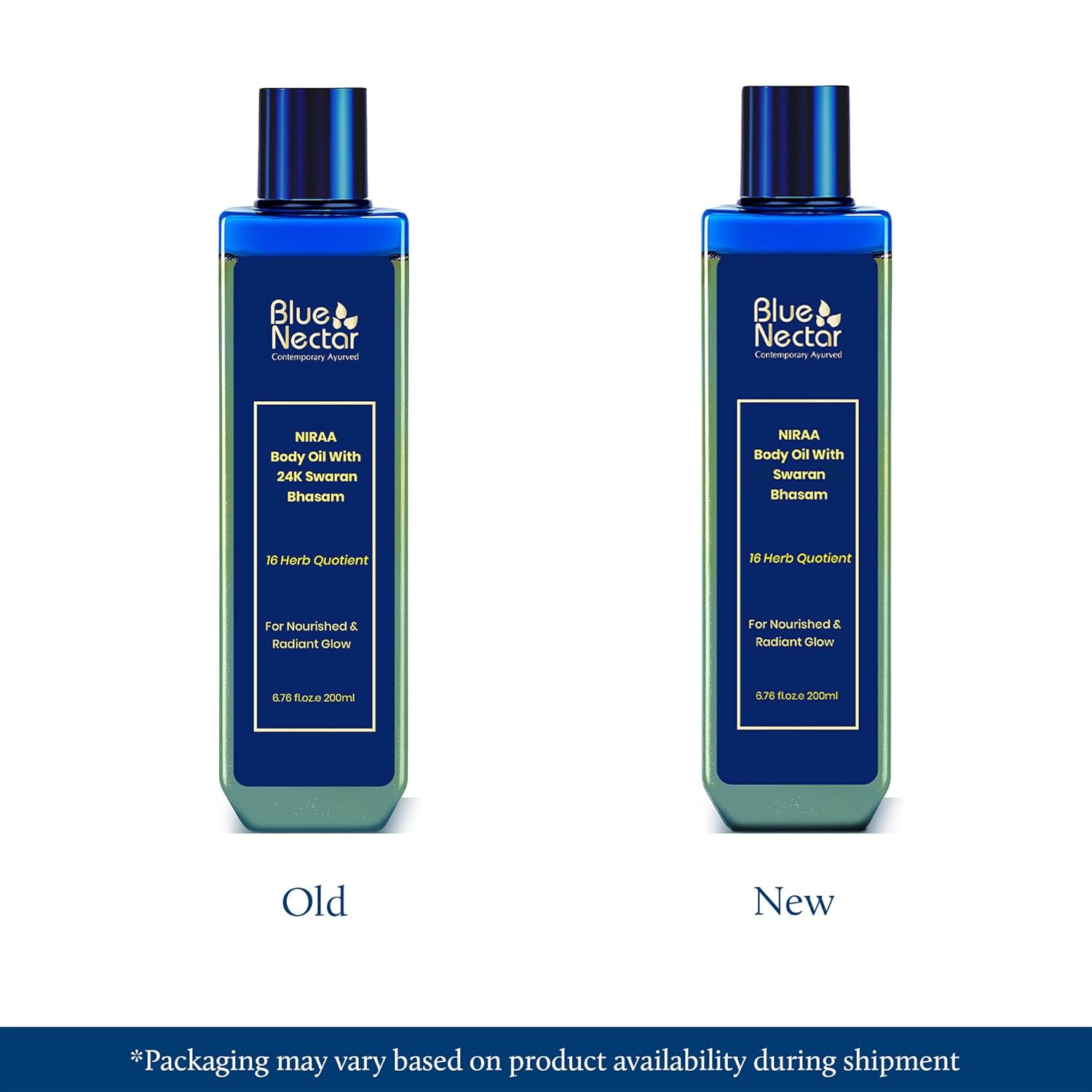 Blue Nectar Body Oil with Swaran Bhasam for Glowing Skin | Ayurvedic Body Oil for Dry Skin | Nourishing Oil with Gold & Shimmer (16 Herbs, 6.76 Fl Oz)