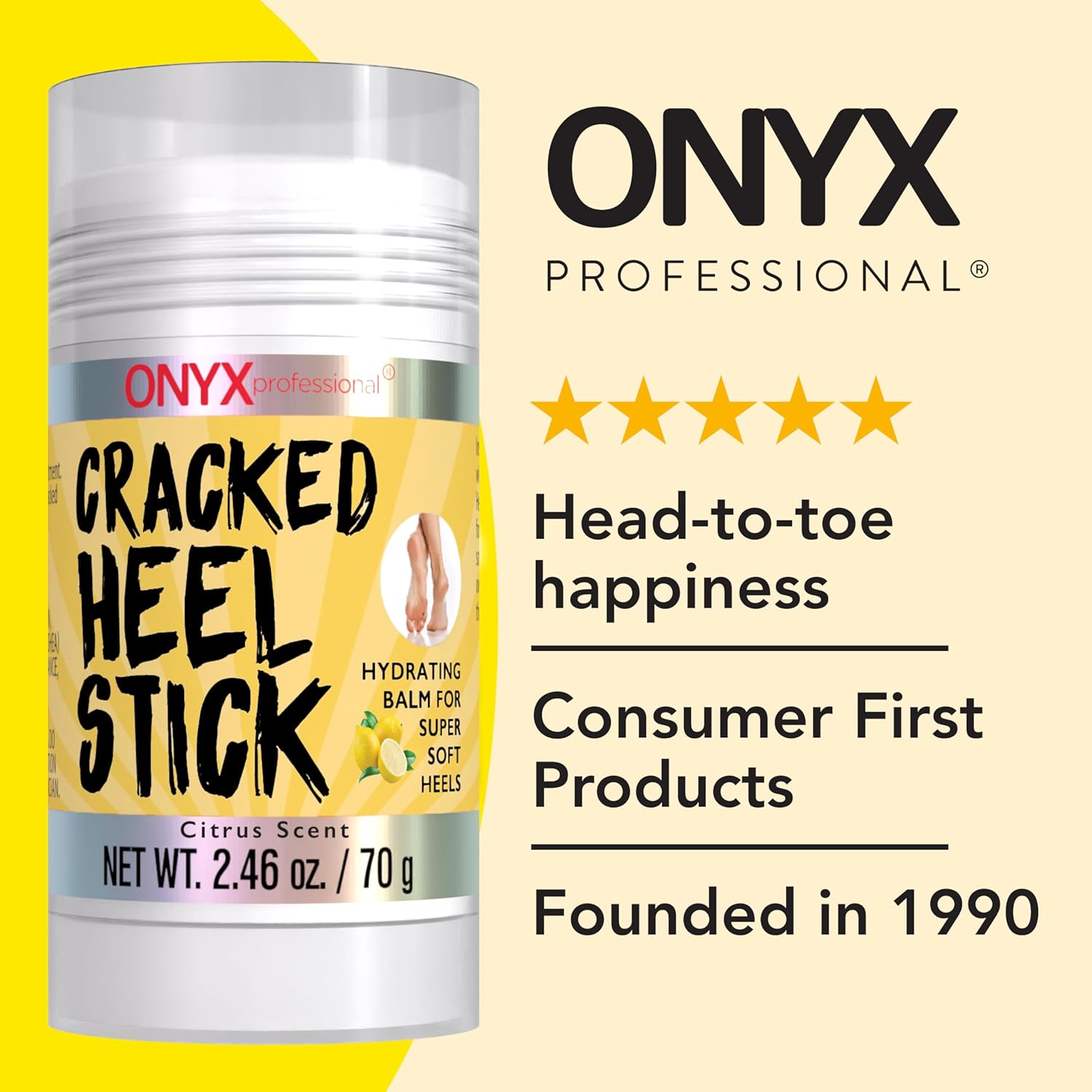 Onyx Professional Cracked Heel Repair Balm Stick, Citrus Scent, 1 Pack - Dry Heels Dry Cracked Feet Treatment, Moisturizing Heel Balm Rolls On, No Mess Like Foot Cream or Foot Lotion