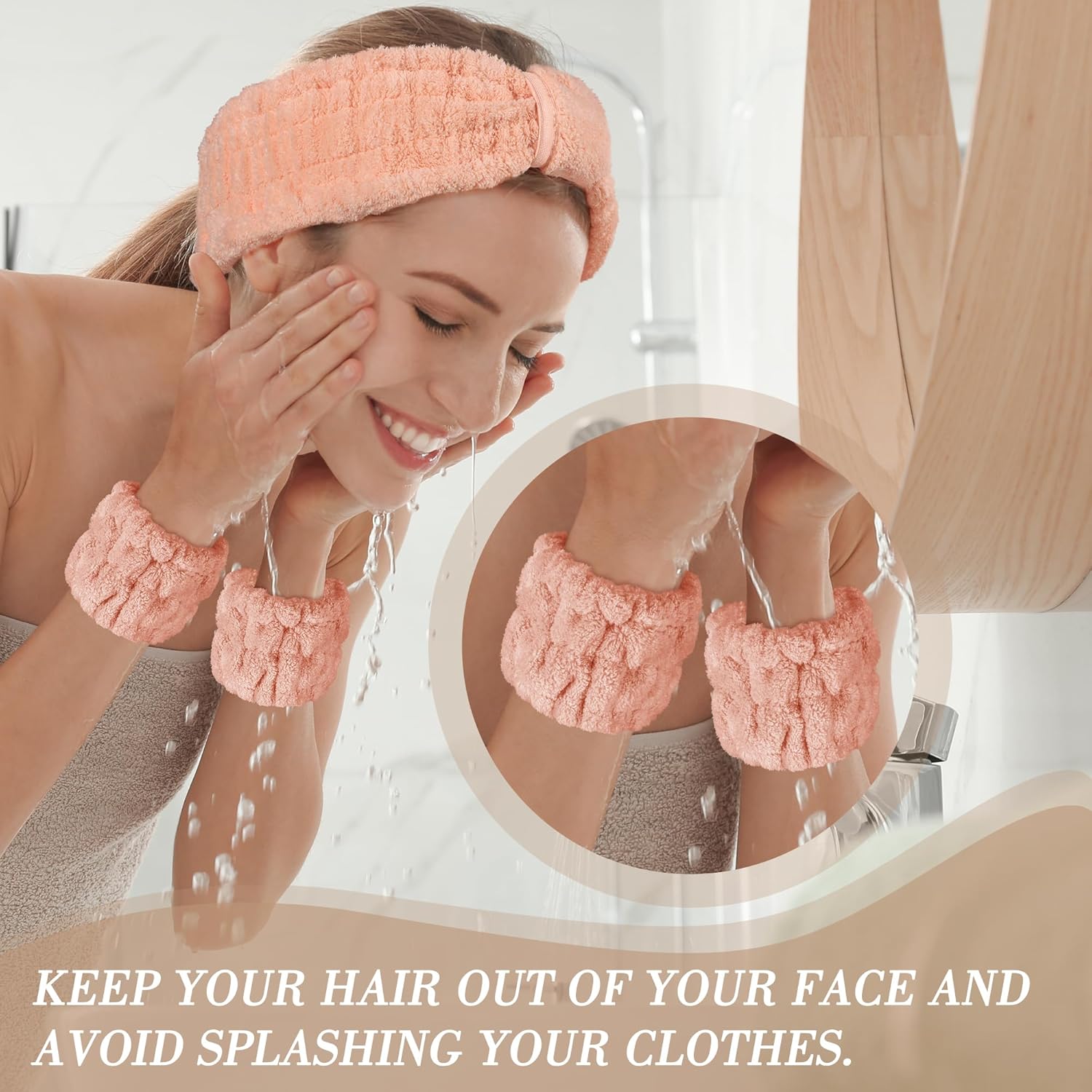 - 【Your Skincare Sidekick & Arm Saver】Comfortable skin care headband keeps every strand off your face and totally dry during washes. The super-absorbent wristbands? They're your drip-free goddess, stopping water and serums from running down your arms. Soggy sleeves are officially canceled!