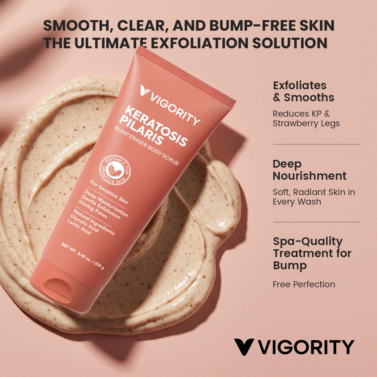 - Complete Your KP Routine: For maximum results, pair with the Vigority KP Bump Eraser Body Lotion. Use the scrub during your shower, then apply the lotion to clean, dry skin to lock in moisture and continue targeting KP bumps throughout the day.