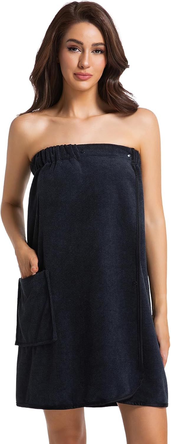 - Design Features:Adjustable Design With Closure,The Womens towel wrap robe is designed with snap buttons and elastic bands, The fine cutting and sewing process makes the Women's bath wrap with snap buttons with smooth lines and beautiful shape.