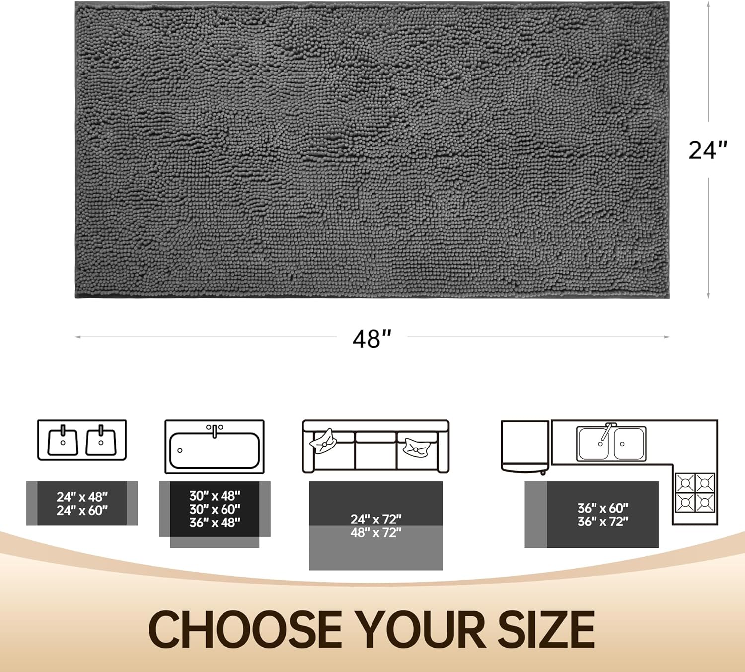 Amyracel Bathroom Rug Mat 24x48, Thick Soft Quick Dry Absorbent Chenille Bath Rug, Rubber Back Non Slip Machine Washable Bath Mat for Bathroom Shower Tub Floor