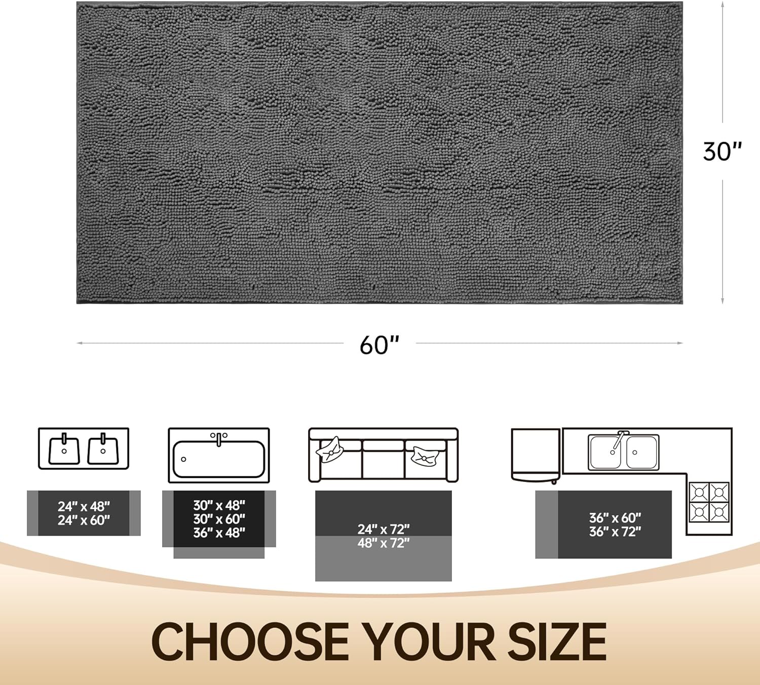 - 【Versatile Use】 8 size options (from cozy 24x48" to grand 48x72" bathroom rug mat) with hotel-spa styling. Coordinates perfectly with modern farmhouse or minimalist decors. Secret hack: Use oversized mats as comfy kneeling pads during bubble bath pampering.