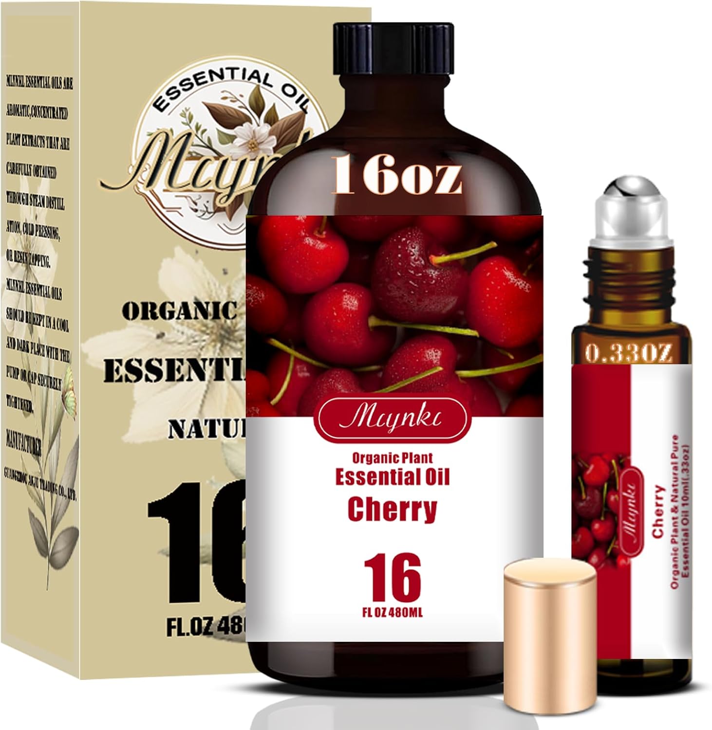 Cherry Fragrance Oil-Cherry Essential Oil 16.33oz (490ml)-100% Pure Natural Scent for Diffusers, Candles, Soap Making & Aromatherapy | Relaxing Home & Gift Essential Oil for Bath, Massage