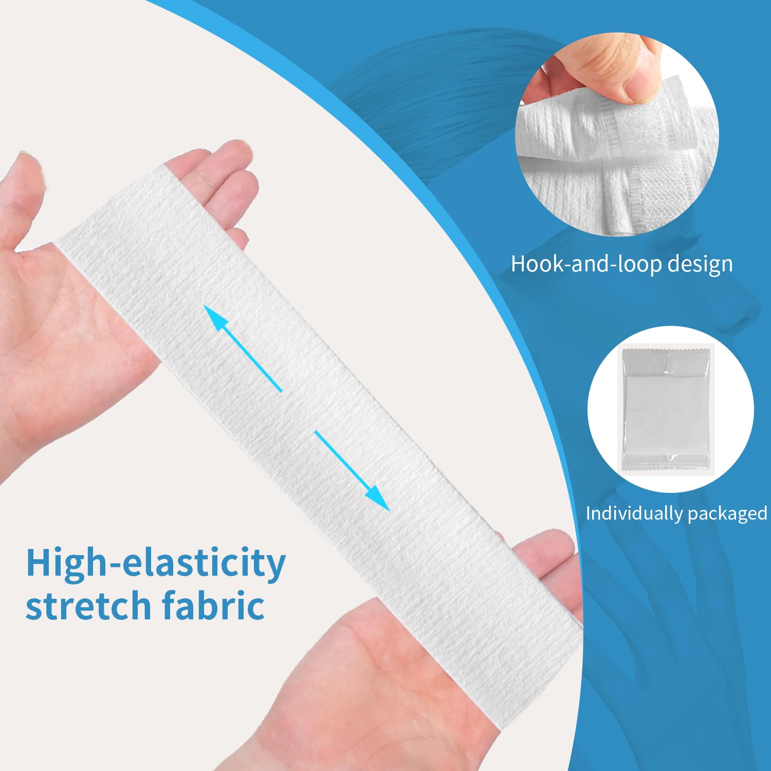 MoyRetty 100 Pack Disposable Headbands for Spa & Facials Professional Disposable Hair Bands, Facial Headbands Esthetician Supplies with Adjustable Magic Tape