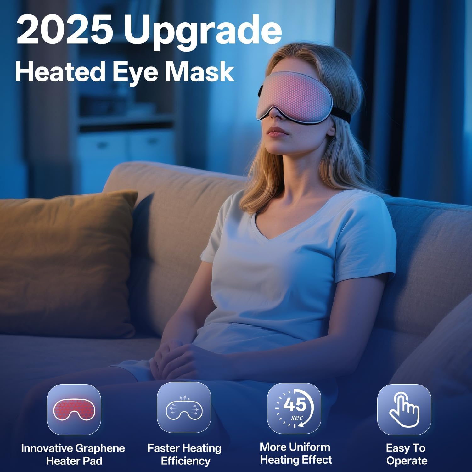 - 【Graphene Heating:Faster & Safer】 Engineered with medical-grade graphene pads, this heated eye mask heats up 3x faster than microwavable masks. Ultra-uniform warmth penetrates 40% deeper to unclog meibomian glands and reduce stye compress frequency. Experience hospital-grade safety with stable heat distribution – the ultimate eye compress for chronic dry eyes.