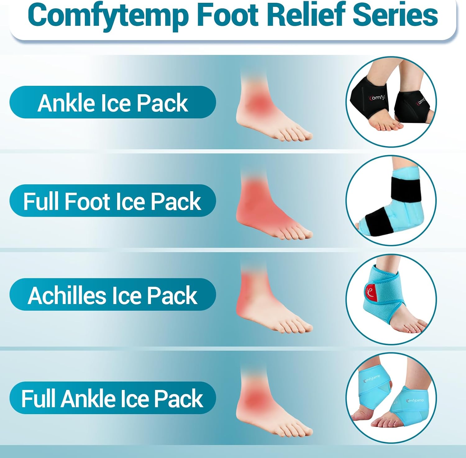 - Convenient, Cost-effective, Ever-ready, Alleviating: Contains 2 ankle ice packs. Offering convenient use on both ankles for long-term or recurring foot pain. With 2 ice packs, you can keep one in the freezer while using the other on sore muscles or injuries. It's obviously cost-effective to buy both together, and having an extra ice pack on hand is handy for unexpected injuries. Experience the convenience, affordability, and preparedness of the Comfytemp ice pack set of 2 for ankle pain relief.