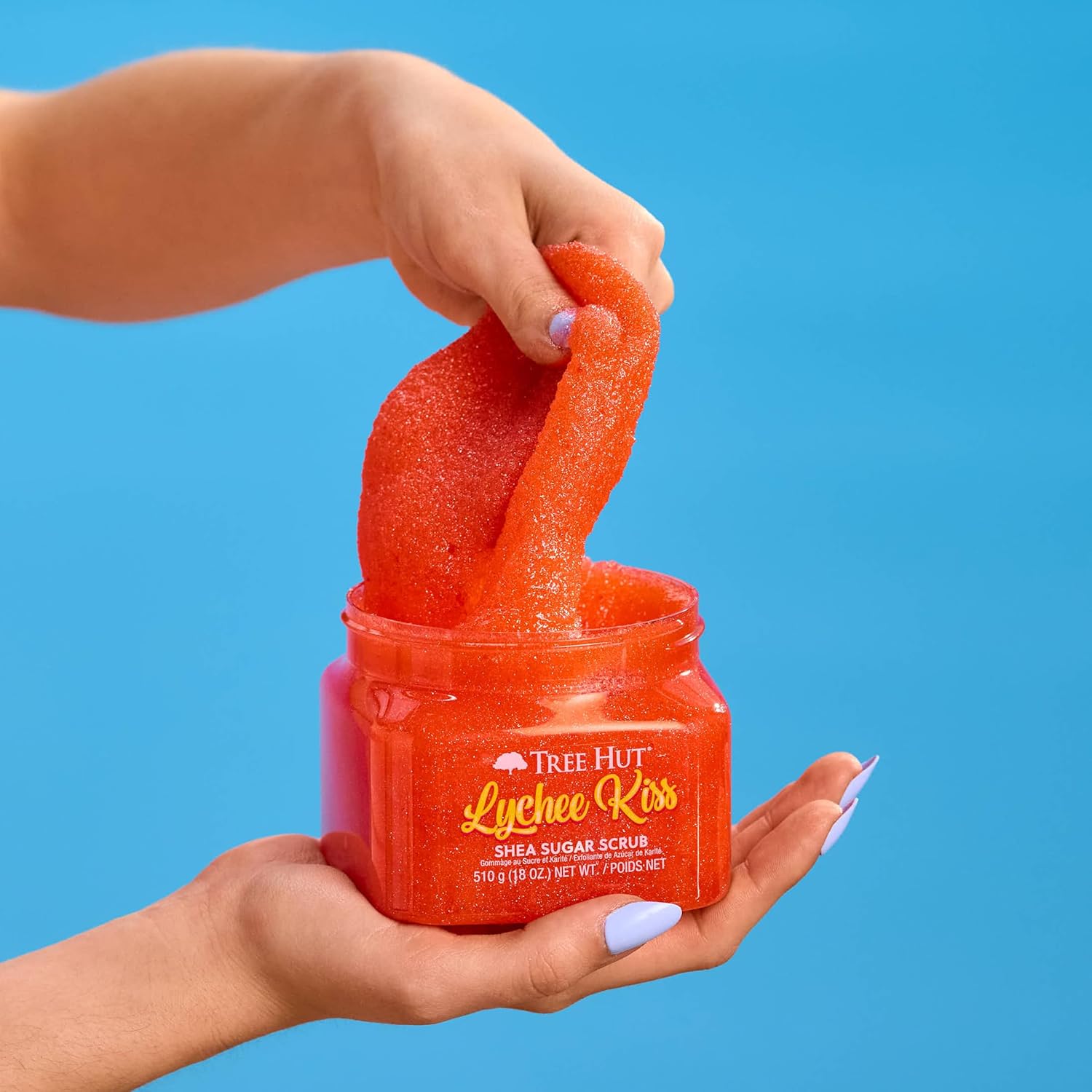 Tree Hut Lychee Kiss Shea Sugar Scrub, Exfoliating, Hydrating & Moisturizing Body Scrub with Shea Butter & Nourishing Essential Oils, Smooth & Soften Skin, 18 oz