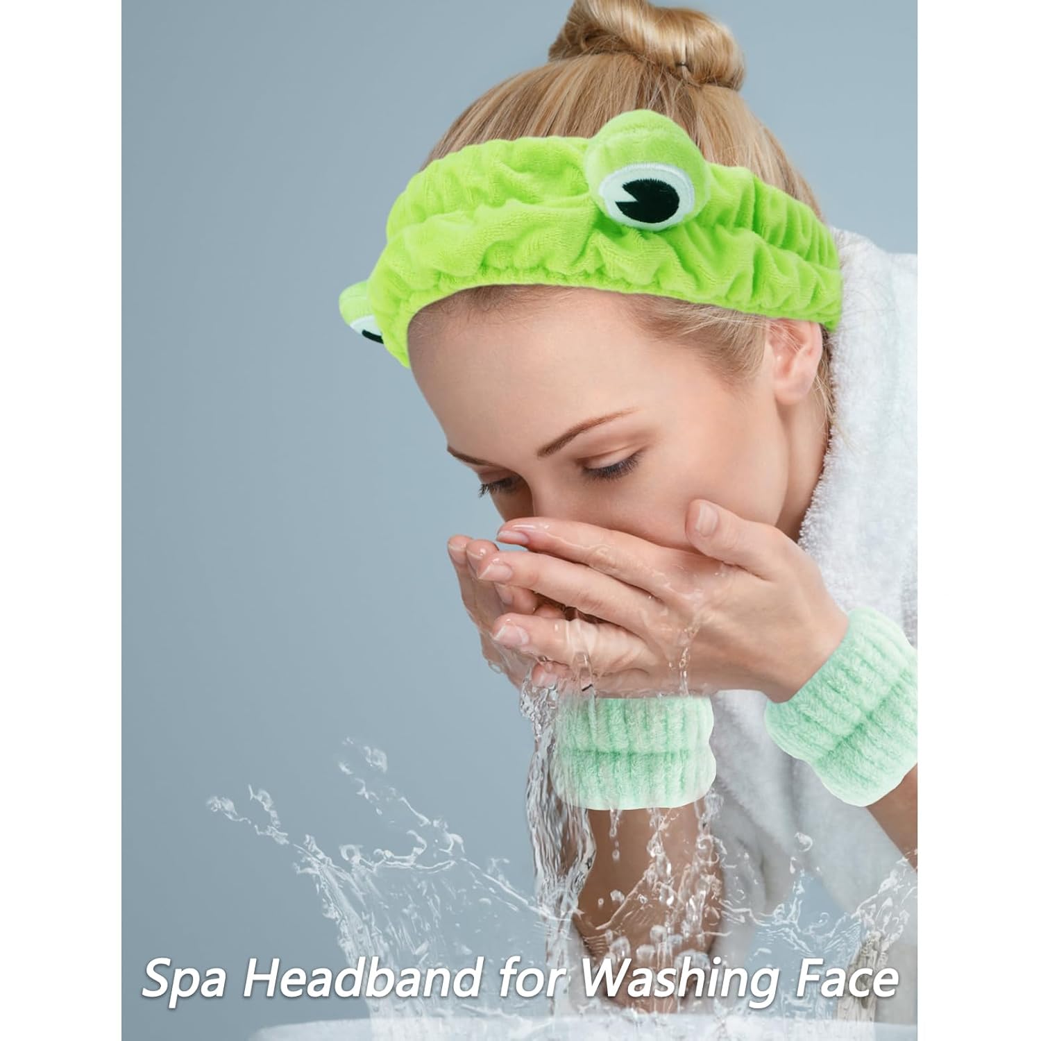 VELSCRUN Spa Headband, Makeup Face Wash Skincare Headbands, 5 Pcs Sponge Get Ready Frog Hairband Facial Wristband Hair Clip Set, Stuff for Teen Girls Women Trendy Fashion Hair Accessories Green