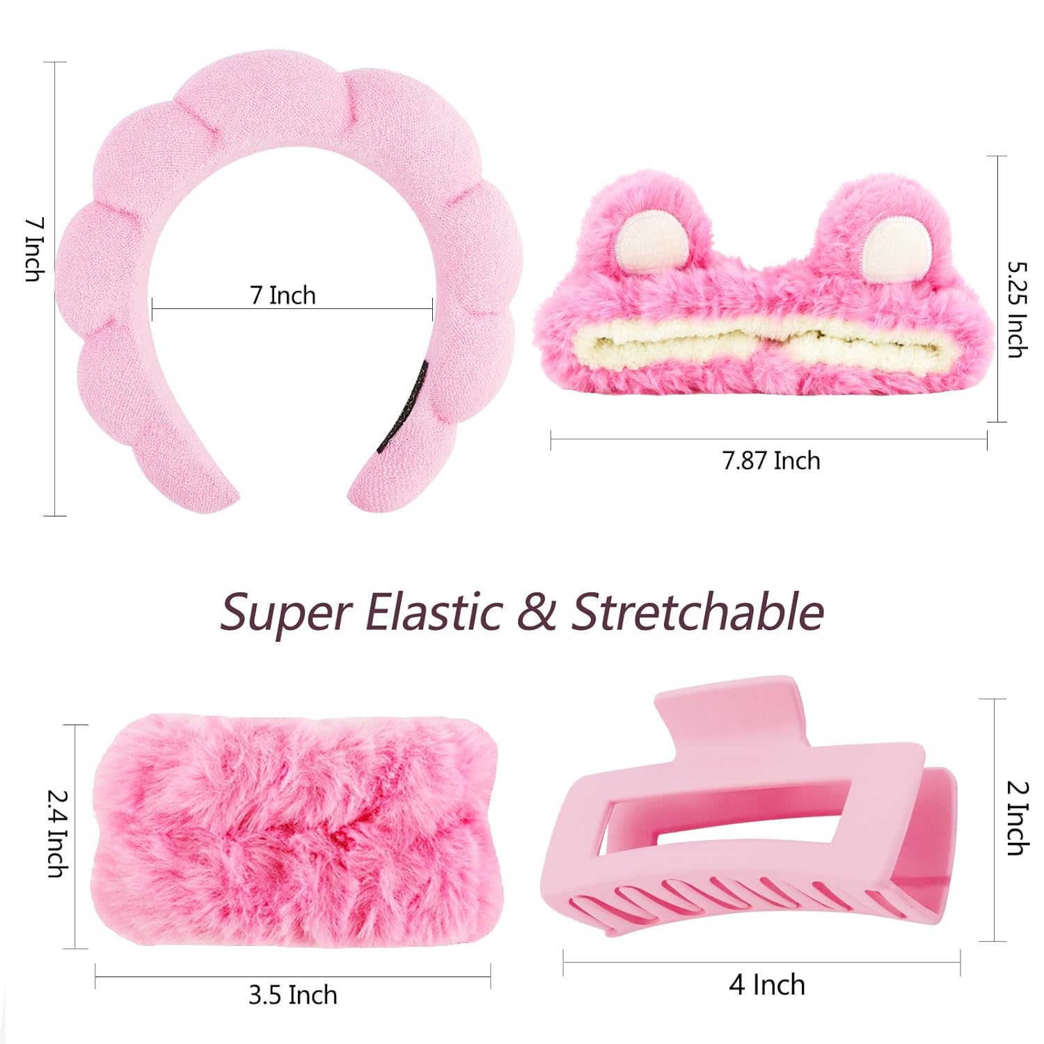 - What you get: The package has two wrist bands, a spa sponge headband, a hair clip, and a bow shape on the top of the spa headband, which makes your face wash easier and simpler