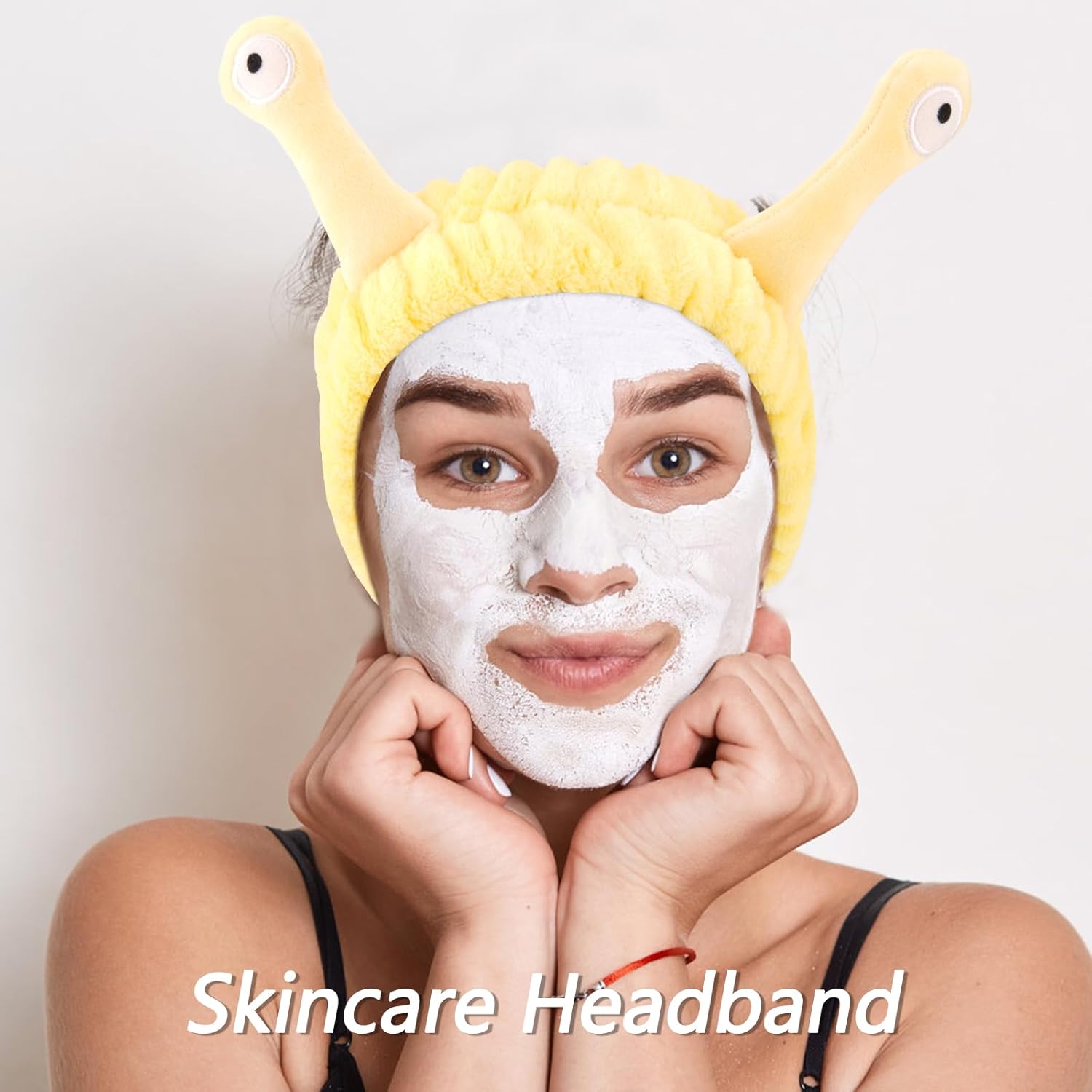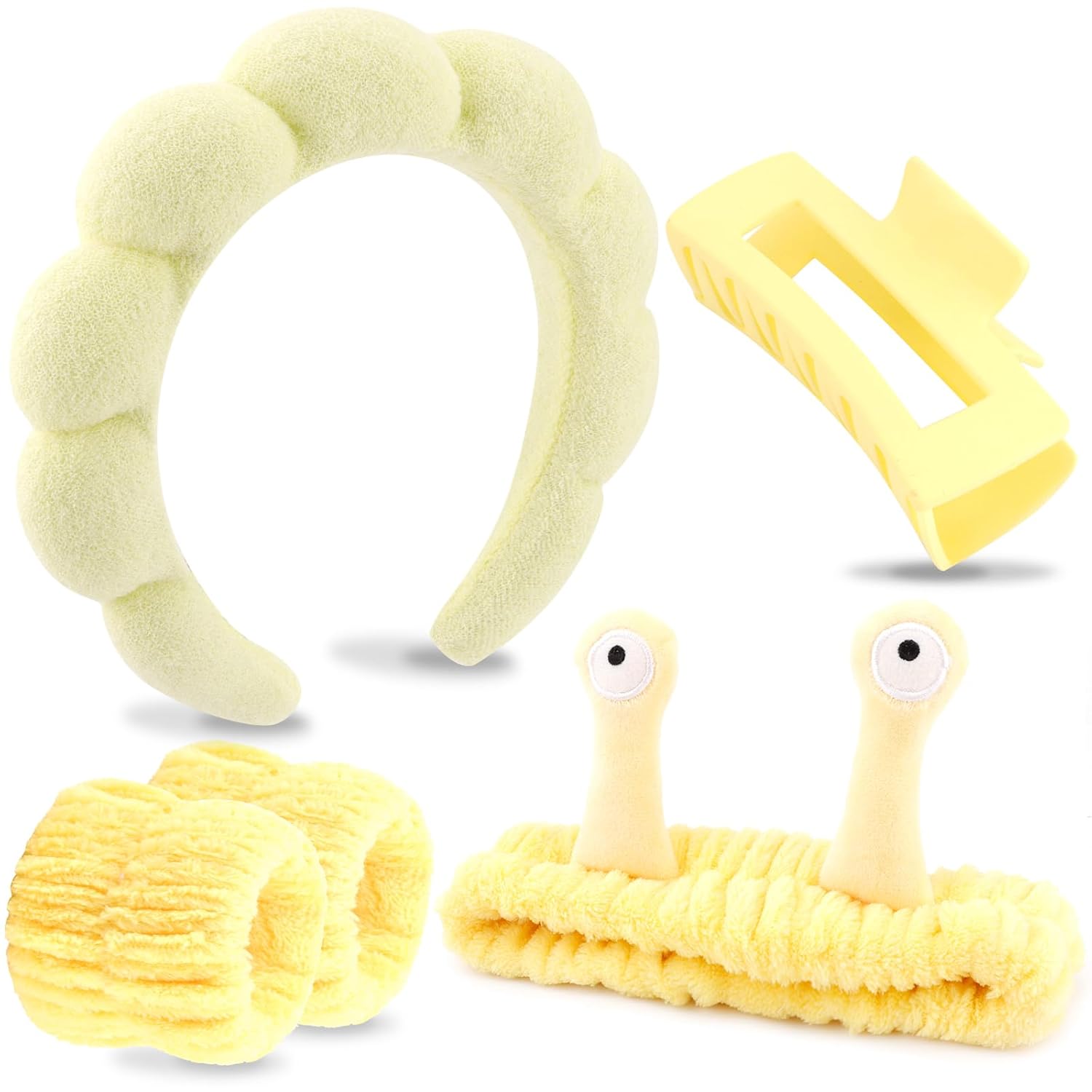 VELSCRUN Spa Headband, Makeup Face Wash Skincare Headbands, 5 Pcs Sponge Get Ready Snail Hairband Facial Wristband Hair Clip Set, Stuff for Teen Girls Women Trendy Hair Accessories Yellow