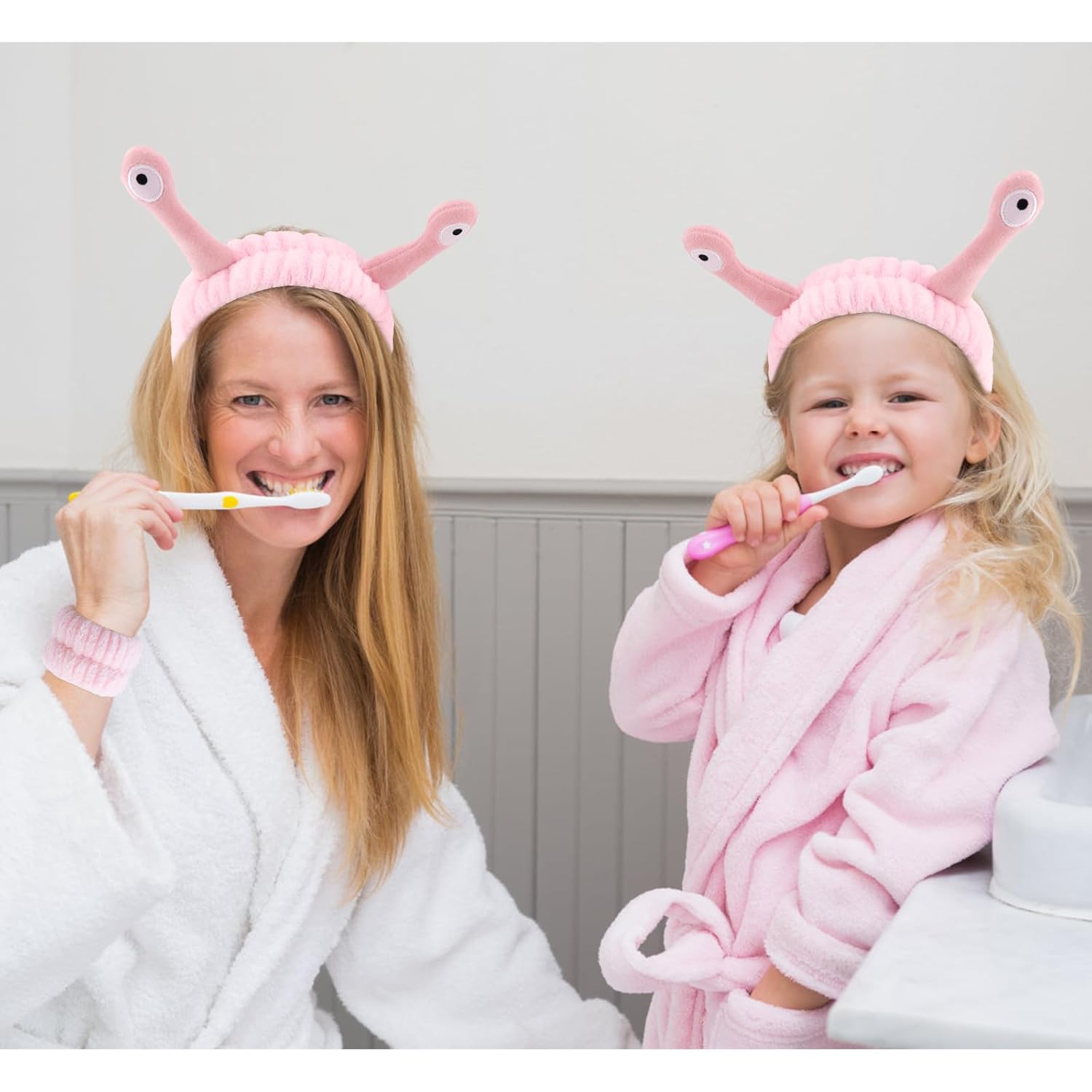 VELSCRUN Spa Headband, Makeup Face Wash Skincare Headbands, 5 Pcs Sponge Get Ready Snail Hairband Facial Wristband Hair Clip Set, Stuff for Teen Girls Women Trendy Hair Accessories Sakura Pink