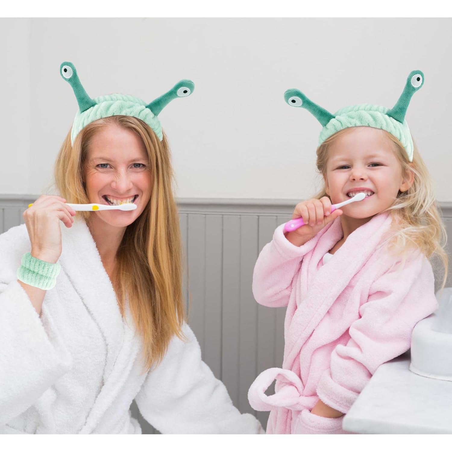 VELSCRUN Spa Headband, Makeup Face Wash Skincare Headbands, 5 Pcs Sponge Get Ready Snail Hairband Facial Wristband Hair Clip Set, Stuff for Teen Girls Women Trendy Hair Accessories Light Green
