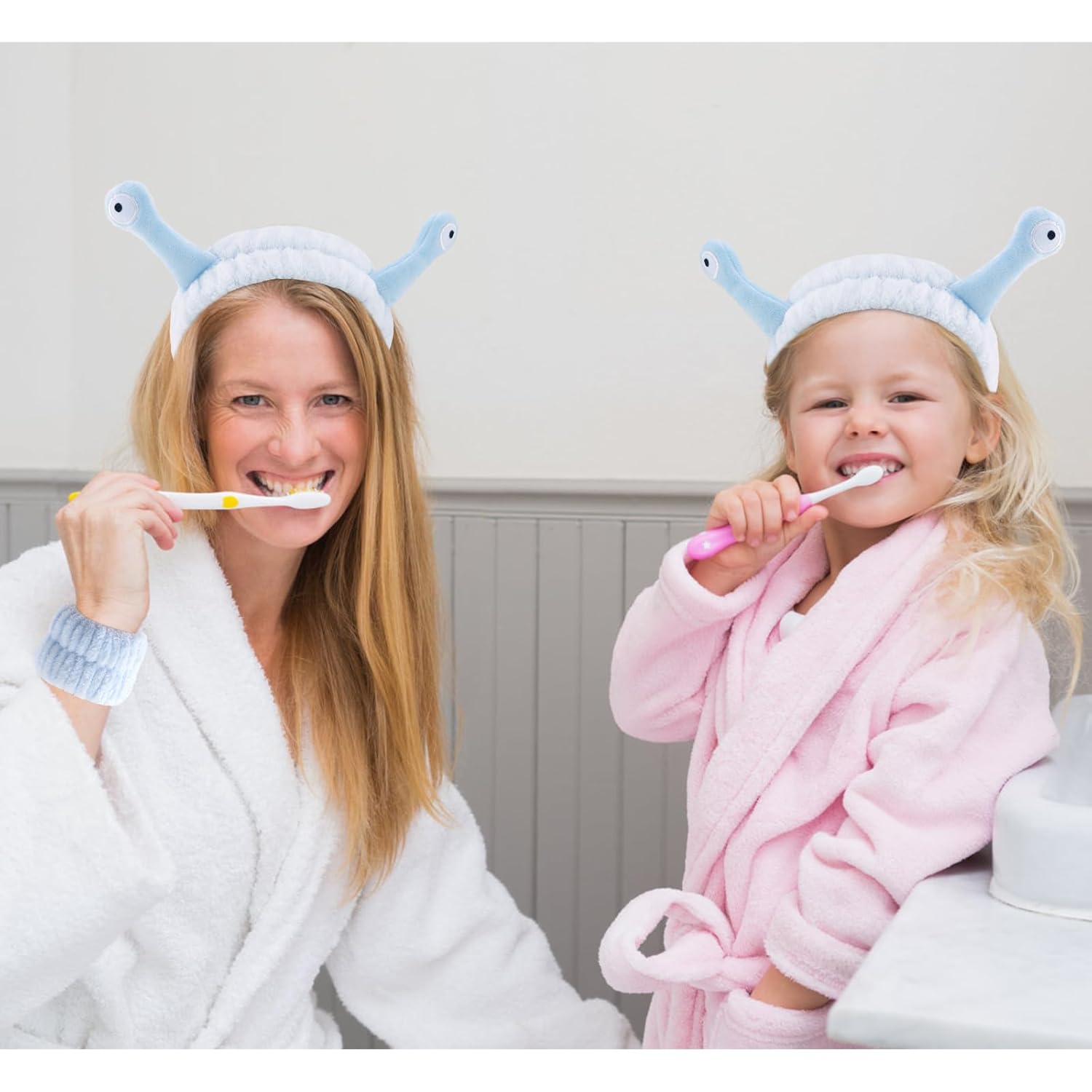 VELSCRUN Spa Headband, Makeup Face Wash Skincare Headbands, 5 Pcs Sponge Get Ready Snail Hairband Facial Wristband Hair Clip Set, Stuff for Teen Girls Women Trendy Hair Accessories Blue