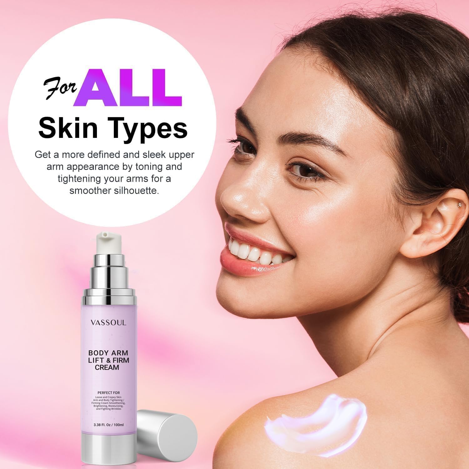 VASSOUL Lift and Firm Arm Cream : Skin Tightening Cream for Body - Firms Loose Skin, Reduces Cellulite on Arms, Thighs & Butt – 100ML