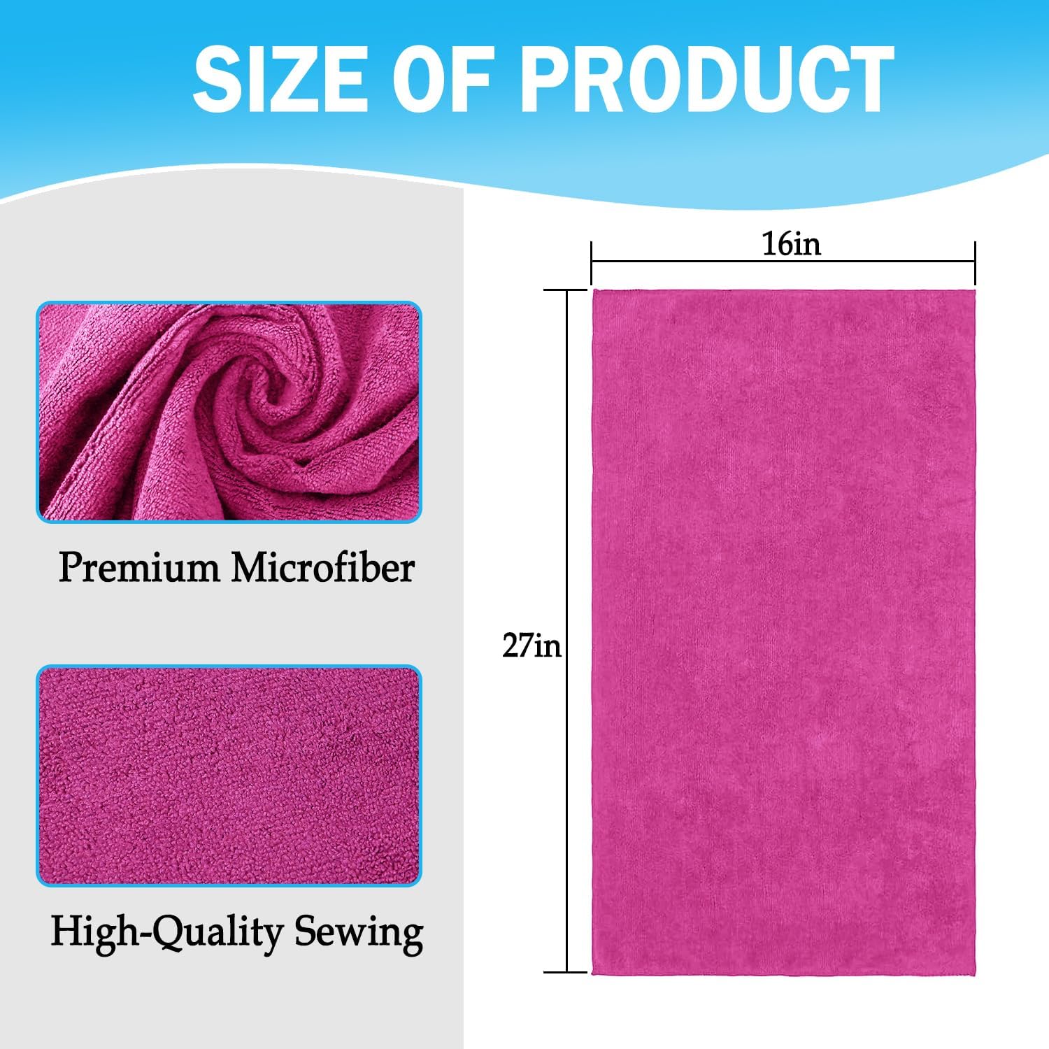 Pink Salon Towels, Super Soft and Absorbent Microfiber Hair Towel for Salon, Bath, Spa, Pool and Home, 27 inch X 16 inch (Pink - 6 Pack)