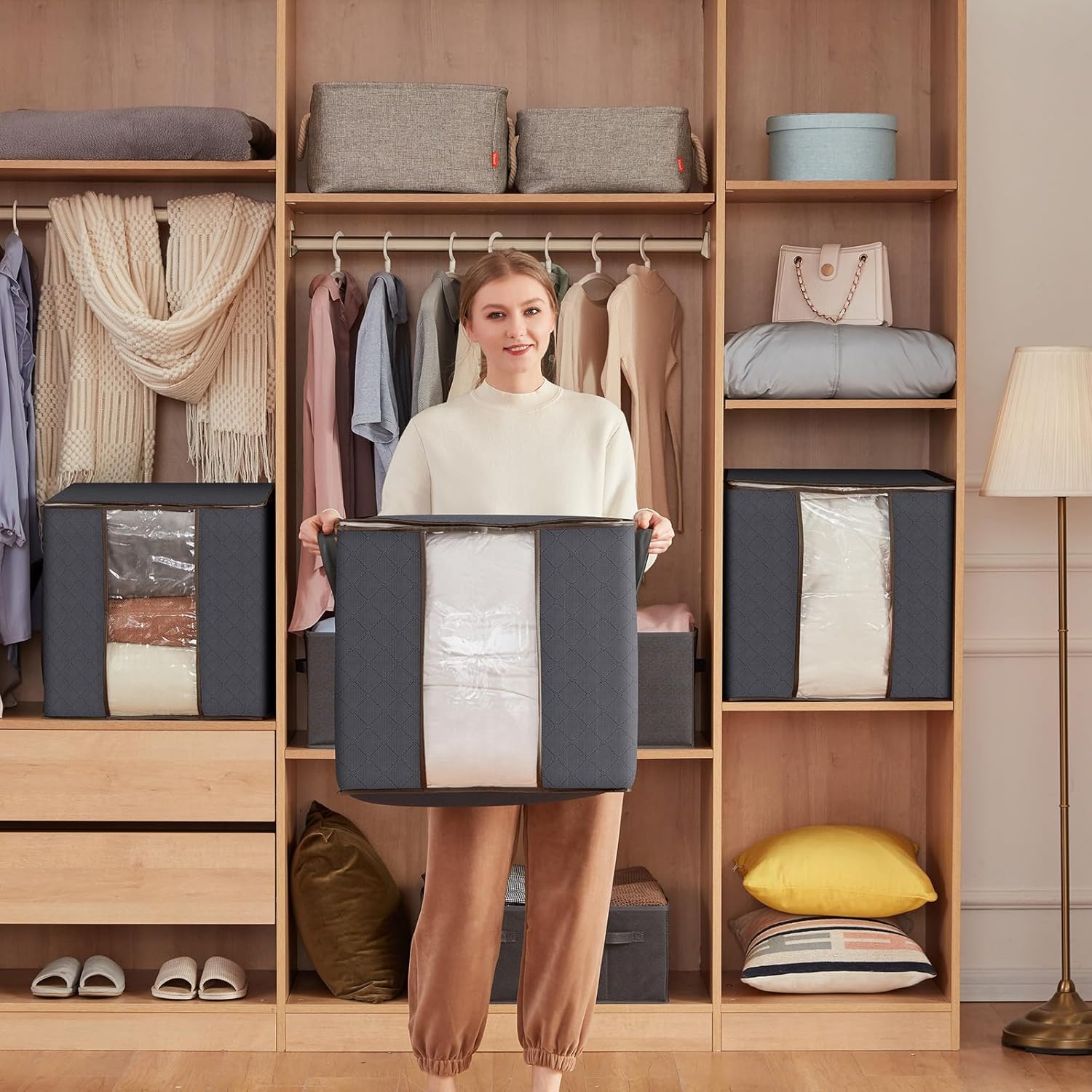 Lifewit 6 Packs 100L Clothes Storage Bag, Storage Bins for Clothes, Blankets, Comforters, Foldable Clothing Storage with Reinforced Handle, Sturdy Zipper, Closet Organizer With Clear Window, Gray