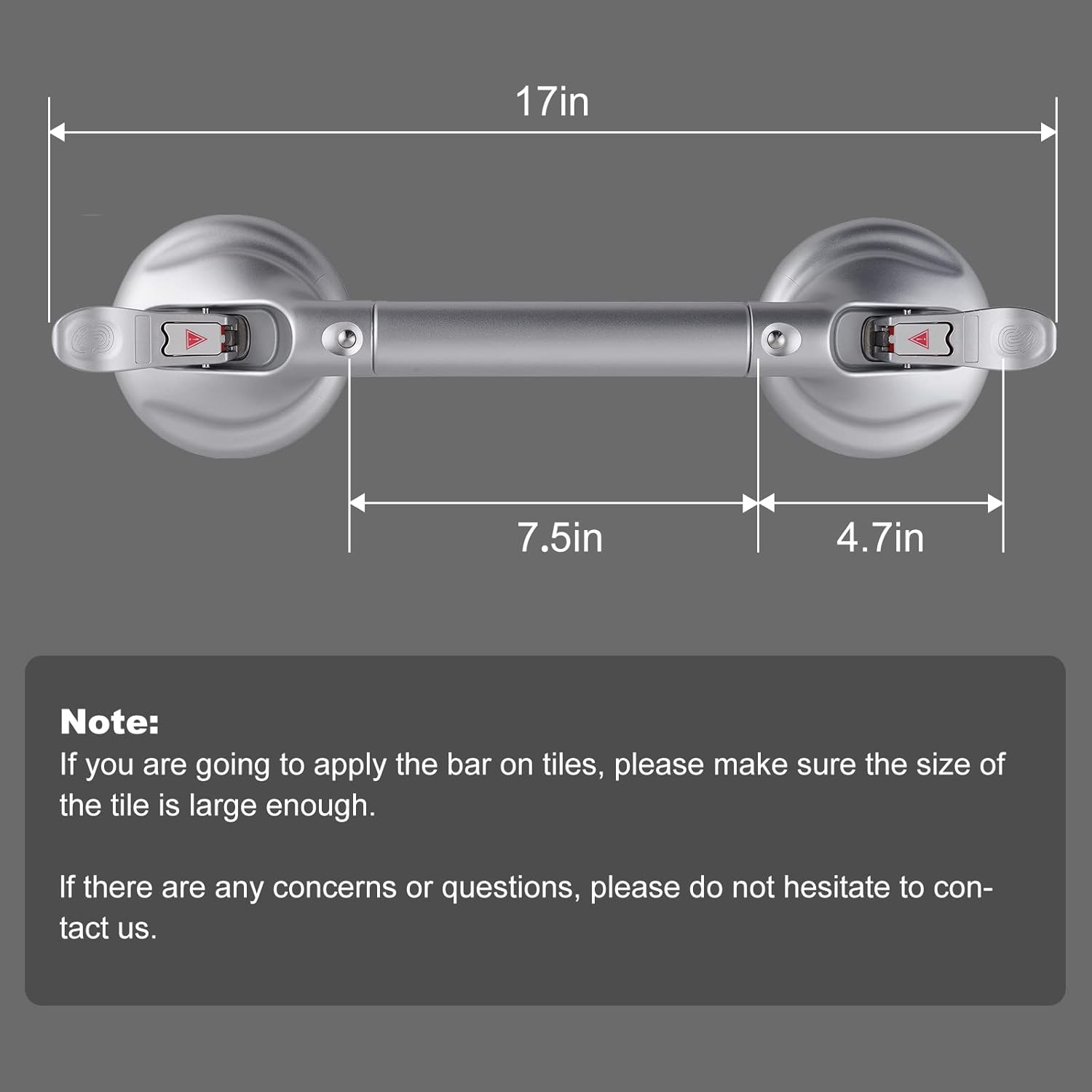 - 🌼One More Tip--Please be kindly reminded that for your safety. Carefully check the suction power of the grab bars before each use. If grab bars for bathtubs and showers has become loose, please reapply it. Suction cups need to be reset once a week at least for renewing vacuum state.