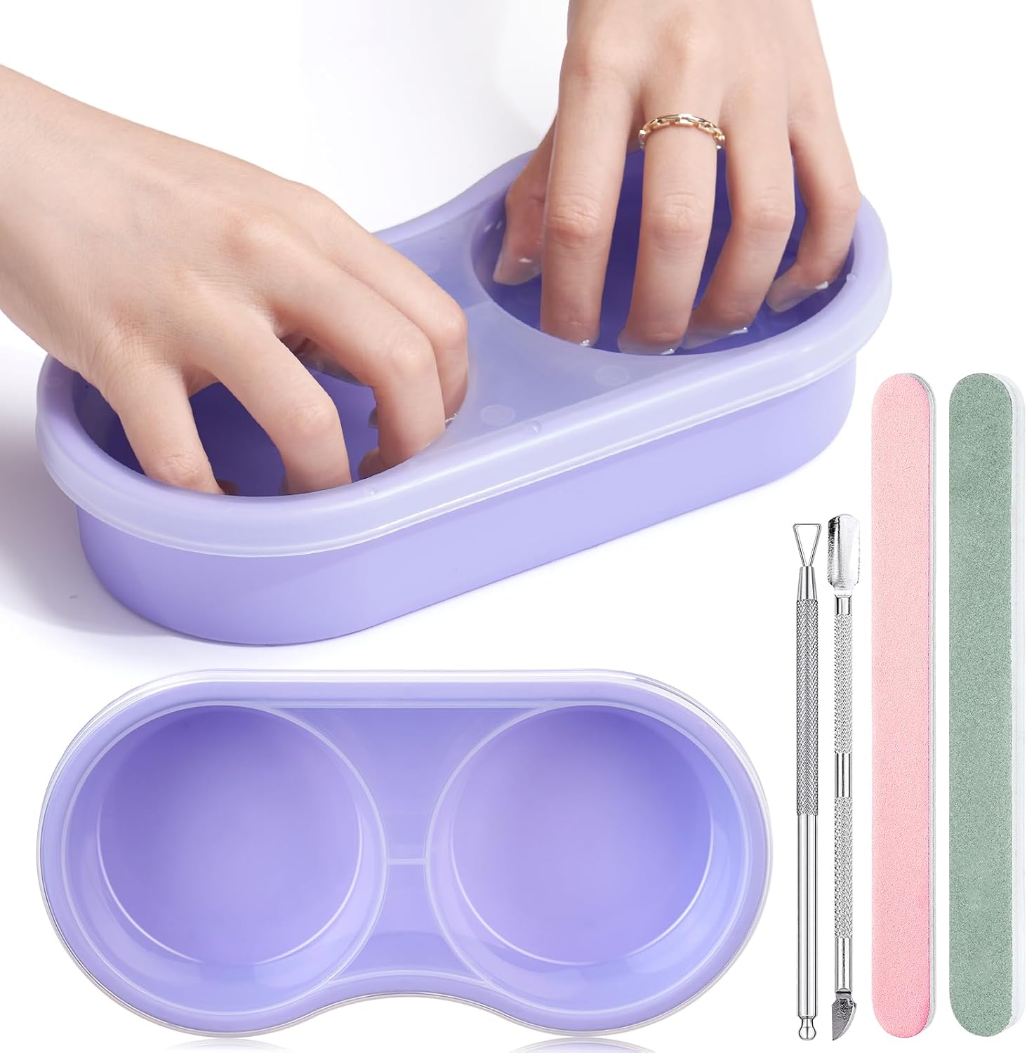 - [Double Soaking in Hot Water Accelerates Nail Removal]- Features a dual-layer structure with the bottom layer for hot water and the top layer for nail remover. The warm acetone in the top layer quickly and effectively removes nail polish while providing a soothing hand spa experience. It's simple to operate and convenient to use