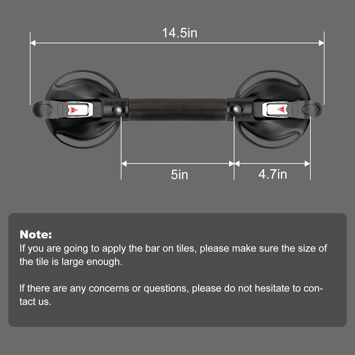- š“ćBuying Guidesć ā The grab bar is to be used only to assist and help support properly a person's body, Never apply full body weight. ā” The mounting surface of the grab bars for elderly suction must be flat, non-porous, and smooth. And measure tiles and the distance between them prior to purchase as suction cups cannot overlap the grout line. ⢠Check the stability of the suction cup periodically. Use with caution and test-proof the suction of cups before use.