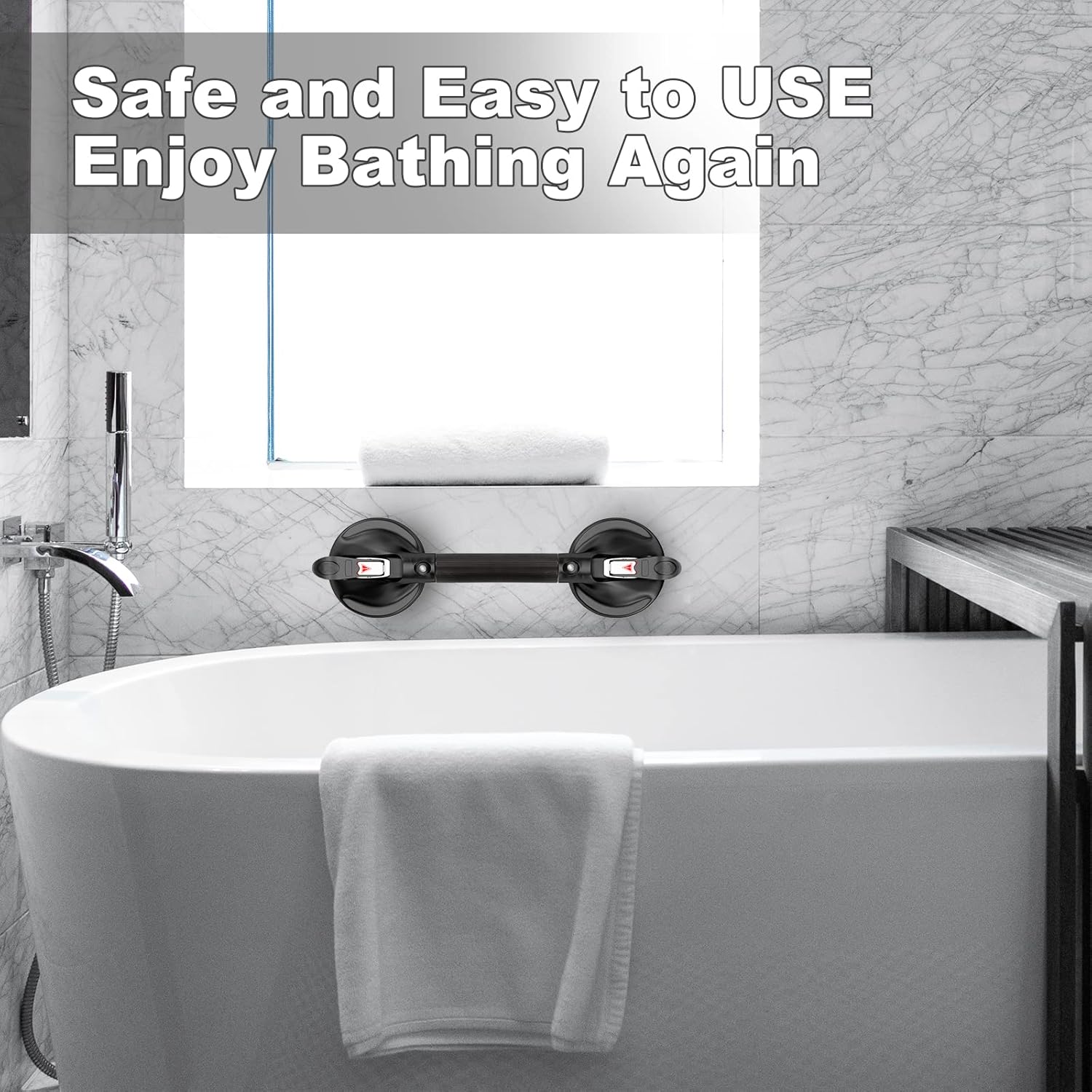 - š“ćHigh Safety with 2 Strong Suctionć This shower handle(grab bars for elderly for wall)is a perfect bath tool that can keep safe and provide stable protection. This Shower Grab Bars for Seniors is very sturdy and durable in 2 strong suction cups with strong power, so you will have a safe experience in the bathroom, bathtub, shower, and toilet. This Handicap Grab Bars is perfect for use with Shower Chair or Shower Bench.