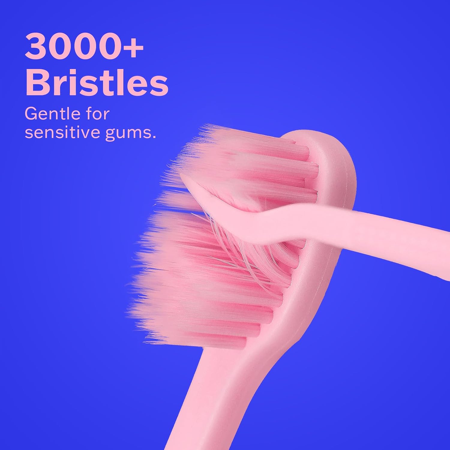 - Extra-Soft Bristles for Sensitive Gums Designed for sensitive or bleeding gums, this extra-soft toothbrush for adults features over 3,000 tapered bristles that gently clean along the gumline for a deep, comfortable clean — even around molars and hard-to-reach back teeth.Labelled as “Soft” on packaging, engineered with extra-fine tapered bristles to deliver an ultra-gentle brushing experience.