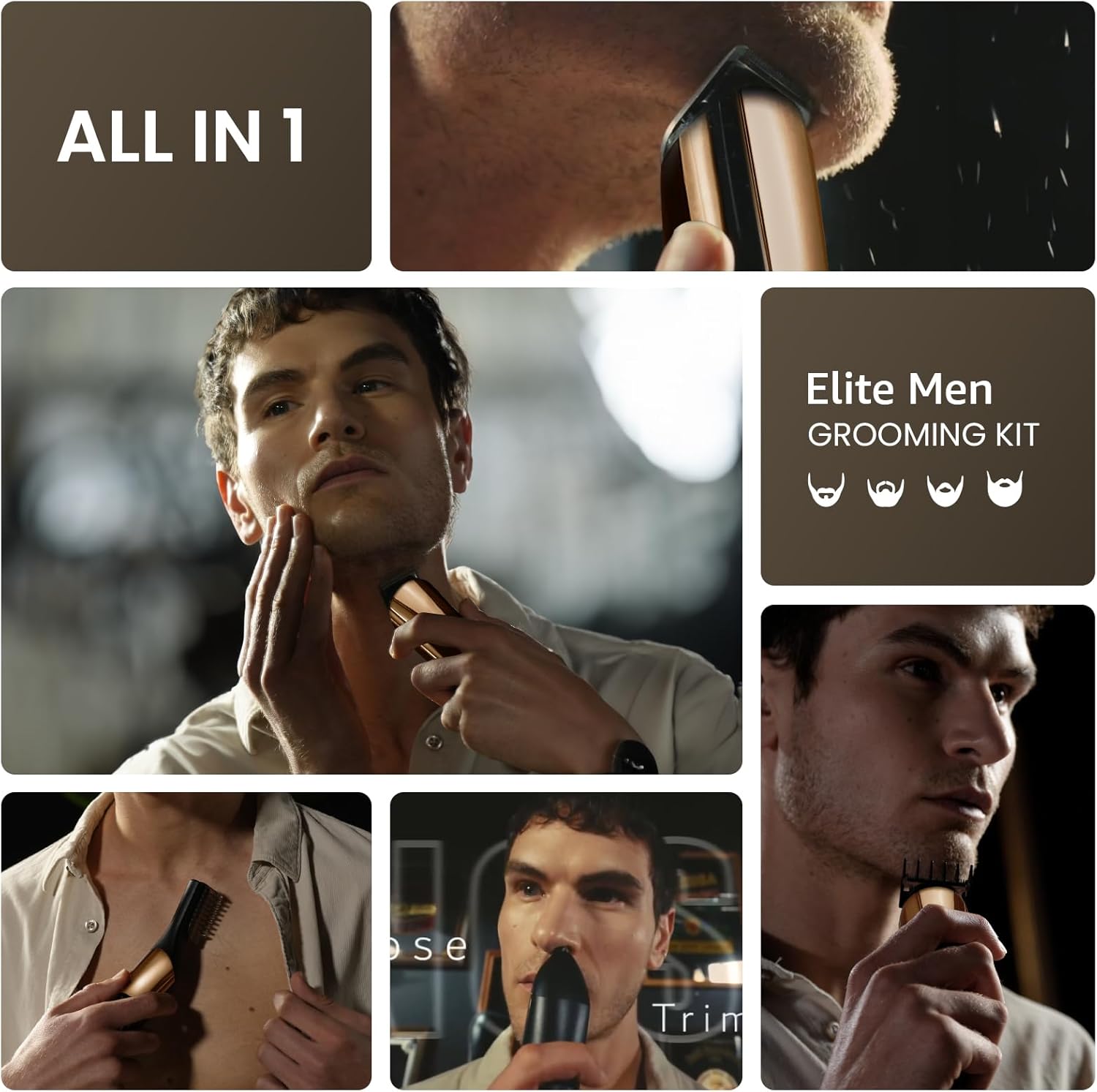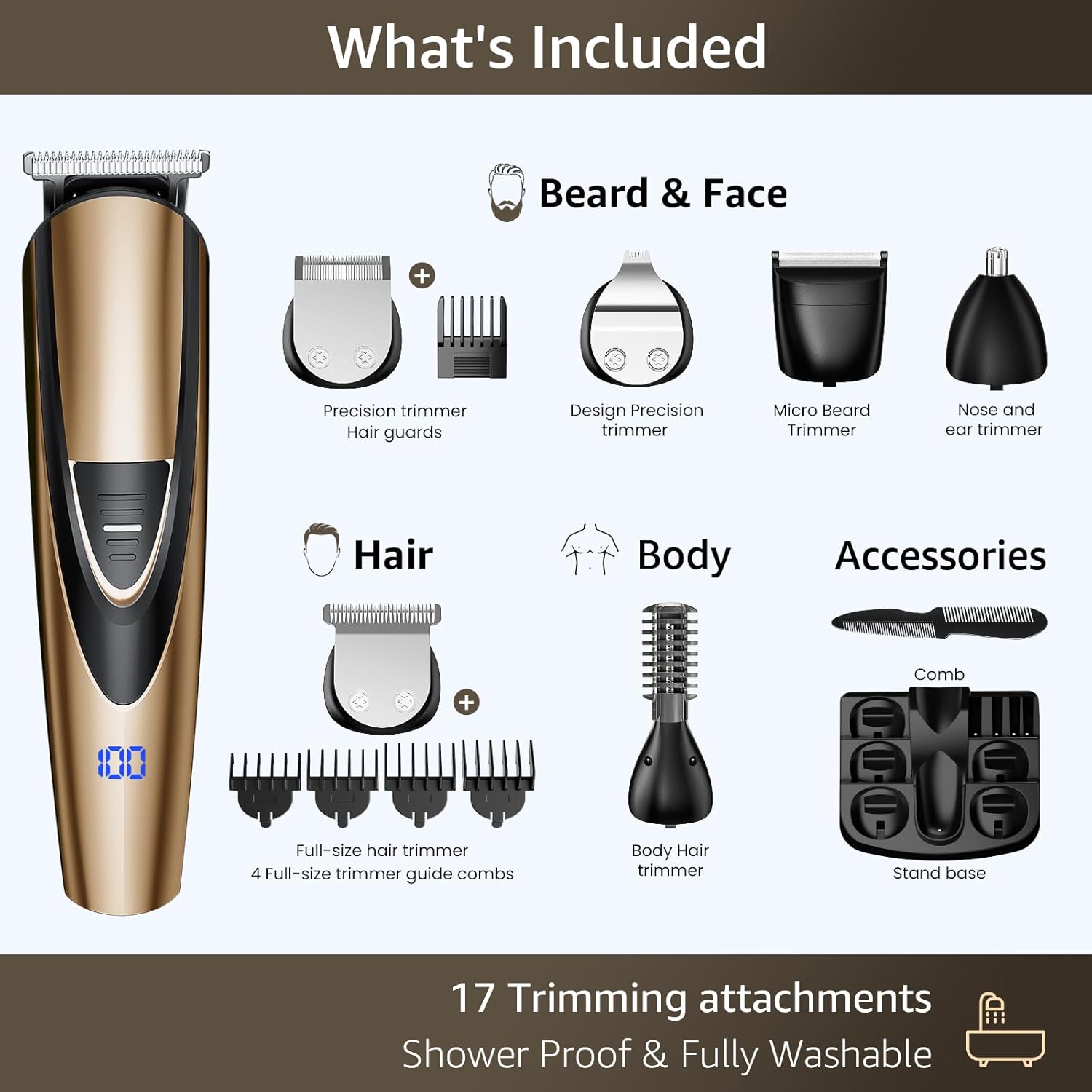 SHPAVVER Electric Beard Trimmer for Men: 16-in-1 Professional Barber Hair Clippers - Cordless Grooming Kit - Turbo Speed & Precision Blades, Gold