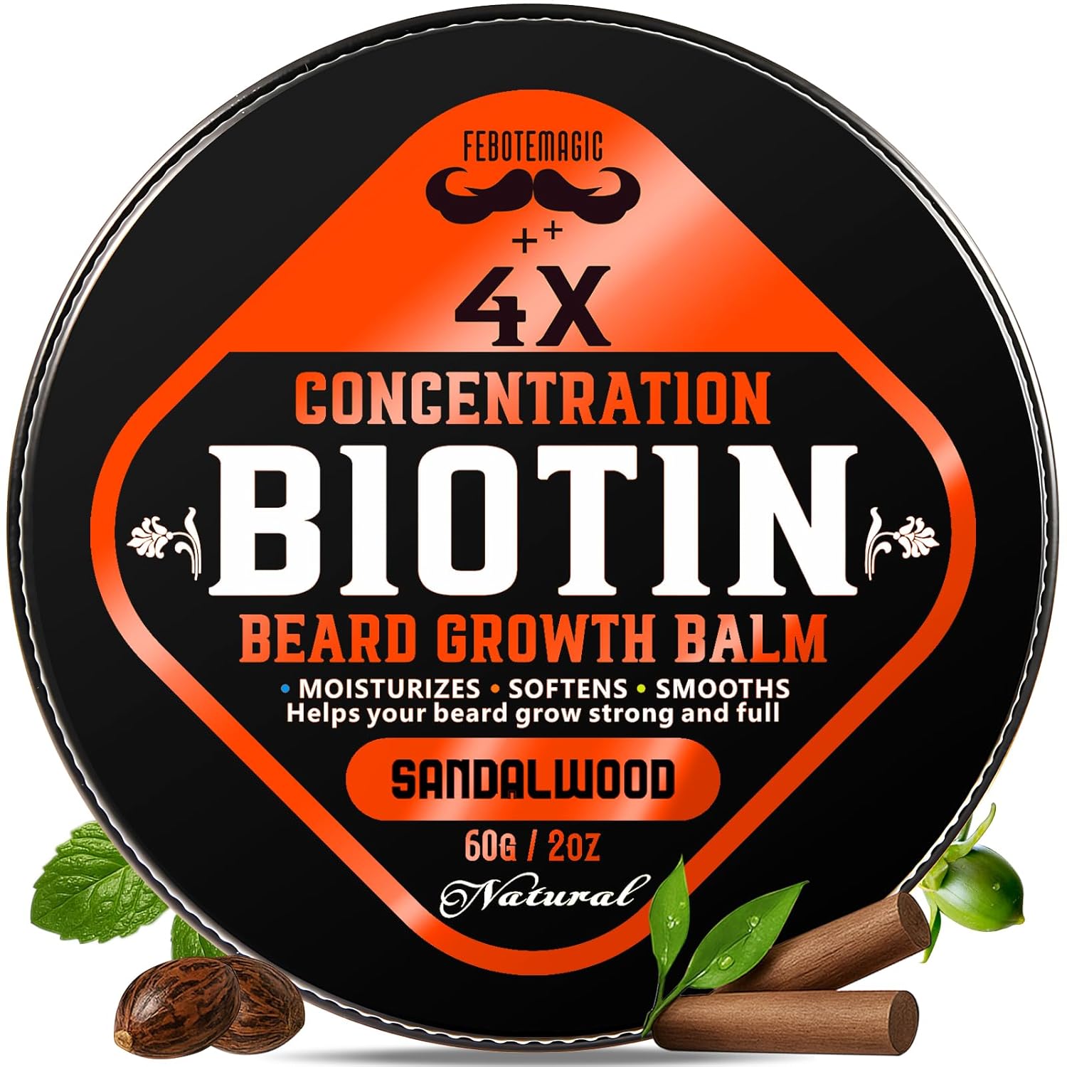 - 【Promotes Fuller, Thicker Beard – Enriched with Biotin, Castor Oil & Jojoba Oil】This sandalwood-scented beard balm is enriched with biotin, castor oil, and jojoba oil to support a fuller, healthier beard. Ideal for patchy, coarse, or brittle beards, it nourishes both the hair and the skin beneath, improving beard appearance and texture for a thicker, more refined look.