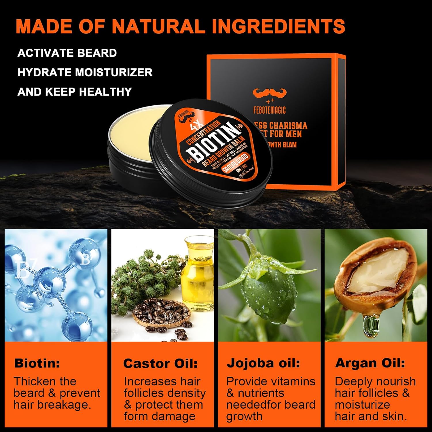 - 👍[Maximum Beard Growth & Strength] Premium 2-pack biotin beard stimulating balm for men supports fuller, thicker, healthier-looking beard growth. Each beard balm softens, strengthens, and nourishes facial hair — a superior bálsamo para crecimiento de barba and conditioning beard solution for men