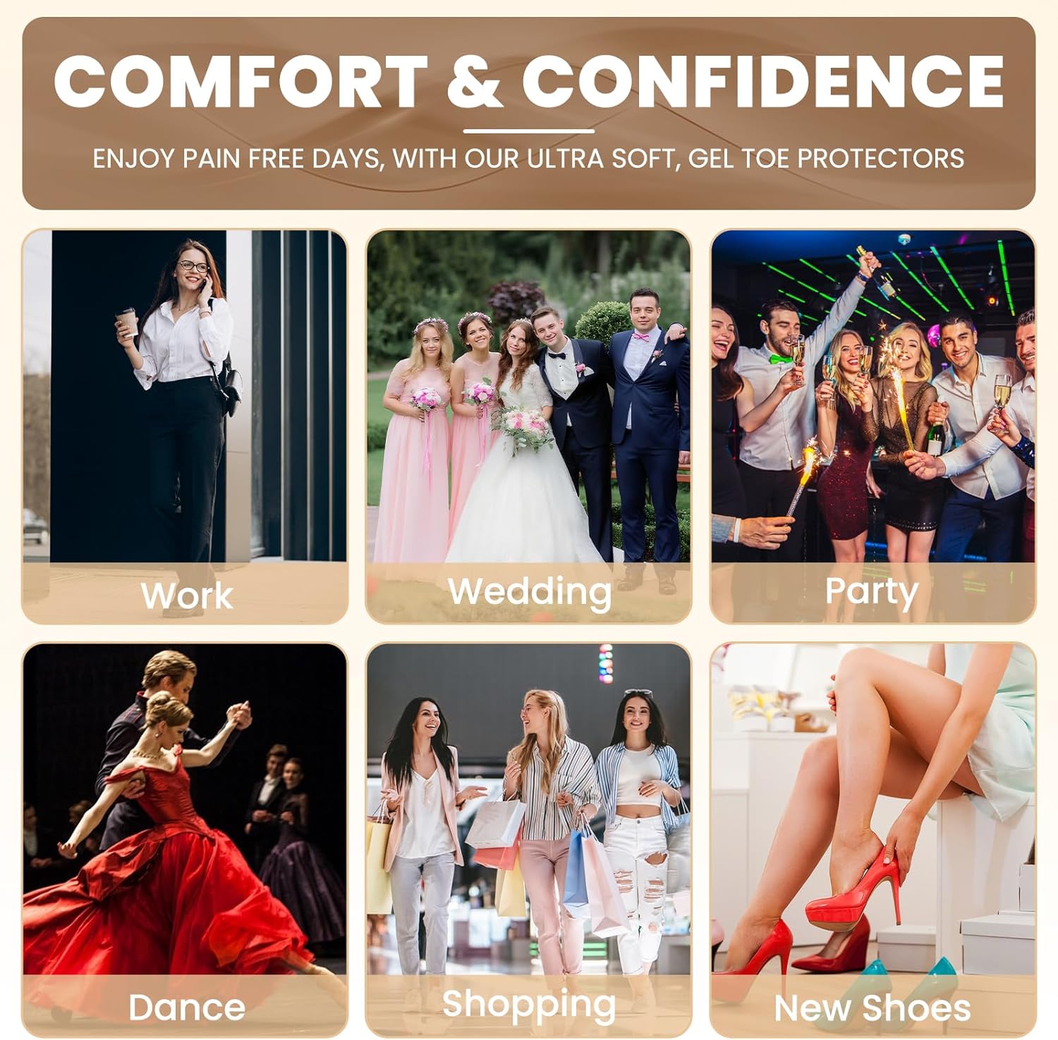 - [Customizable Fit for Any Shoe Style] Our toe protectors for women provide soft, seamless protection against high heel pressure and rubbing. Easily trim to your size for a perfect fit with every shoe type. Flexible toe covers perfect for daily commuting,walking, long-time standing.