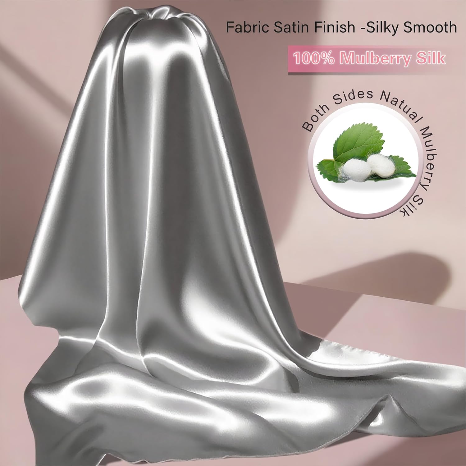 Mulberry Silk Pillow Cases with Zipper, Ultra Smooth Breathable Cooling Pillow Cases for Hot Sleepers, Silk Satin Pillowcase for Hair and Skin, Gifts for Women (Silver Grey, Standard Size, 1 Pack)
