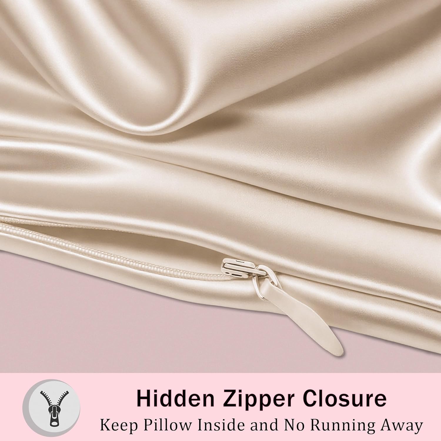 Mulberry Silk Pillow Cases with Zipper, Ultra Smooth Soft Breathable Cooling Pillow Cases for Hot Sleepers, Silk Satin Pillowcase for Hair and Skin, Gifts for Women (Champagne, Queen Size, 1 Pack)