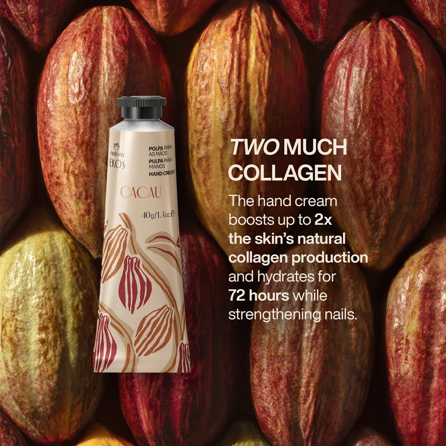 - Deep Hydration and Collagen Boost β Cacau-Powered Lip and Hand Care Duo Indulge in the nourishing power of Amazonian Cacau with this two-in-one kit featuring Ekos Cacau Hand Cream and Lip Balm. Enriched with raw Cacau butter, both formulas stimulate up to 2x more collagen production, delivering 48-hour hydration and helping to restore your skinβs natural barrier for visibly smoother hands and lips. This essential duo is perfect for daily use, travel, or gifting.