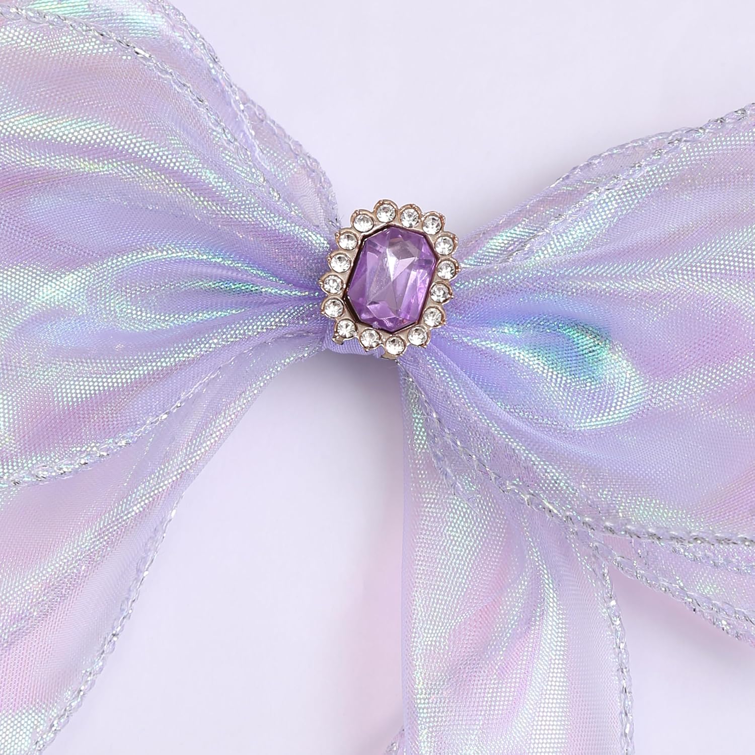 - ELEGANT DESIGN: Set of decorative hair bows featuring crystal and pearl embellishments, with butterfly and crown accents in soft pastel .