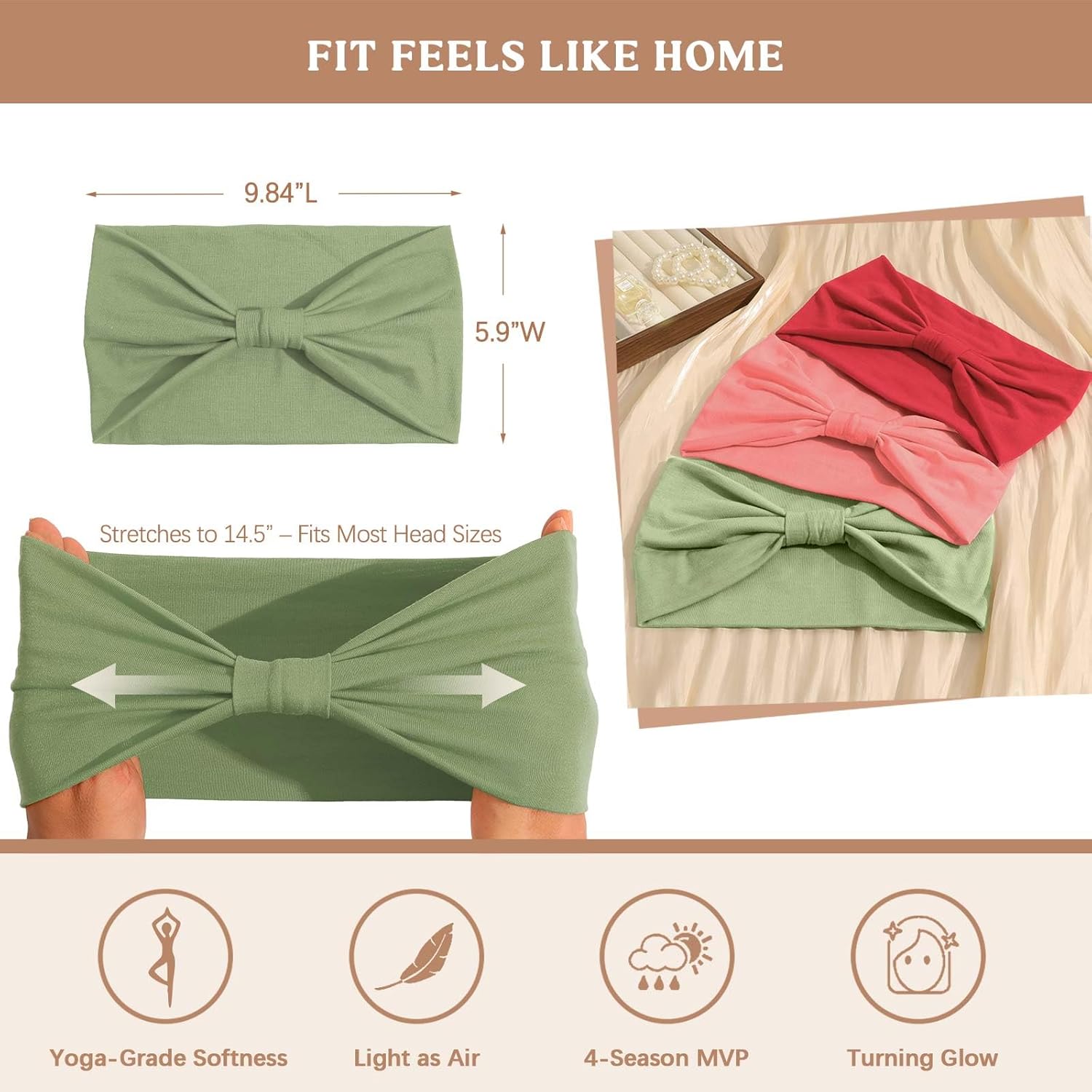 - 【Widen Design】: Wide Head bands - 9.5 inches/24cm in length, 6 inches/15cm in width, can be stretched to 14.5 inches/36cm, suitable for different head circumferences, especially suitable for women with high hairline, good hair cover The boundary line makes you more confident