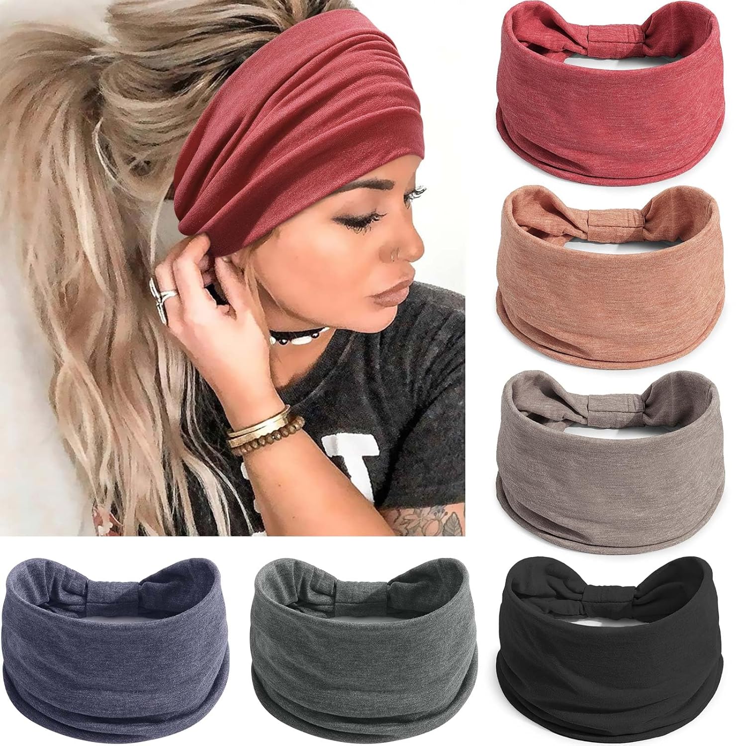 Wide Headbands for Women Knotted No Slip Head Bands Soft Turban Headband Hair Accessories Boho African Solid Color Head Wraps for Women Yoga Workout Pack of 6