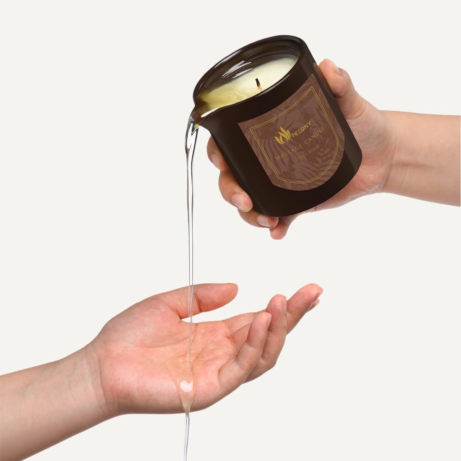 MELONY Massage Oil Candle for Pure Relaxation - 8.1 oz - Moisturizing Essential Oil Body Massage Candle for Home Spa- Amazing Gift for Women & Men (Sandalwood)