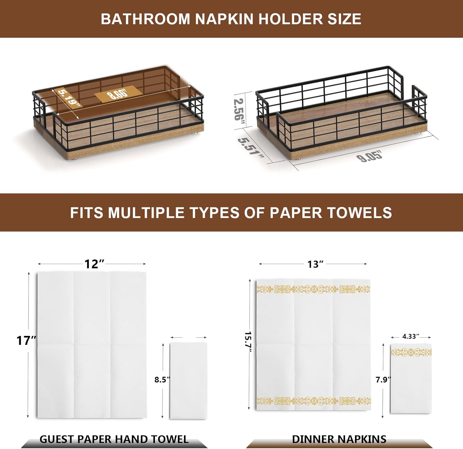 - Quite Versatile: This guest towel holder hold paper towels in the guest bathroom for hand drying; hold paper bath towels for your powder room, easy to retrieve towel when needed; It can also be used as a lunch napkin holder, looking very nice on the dining table