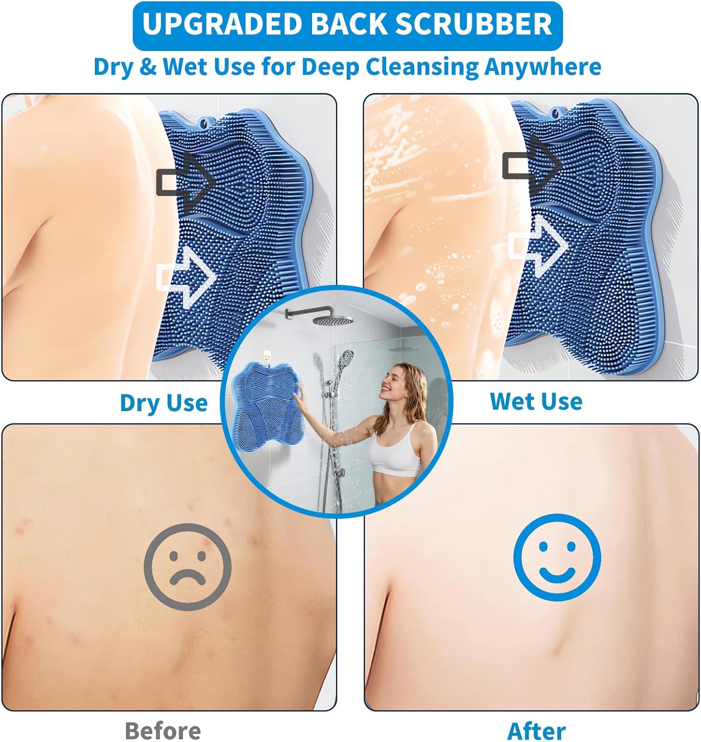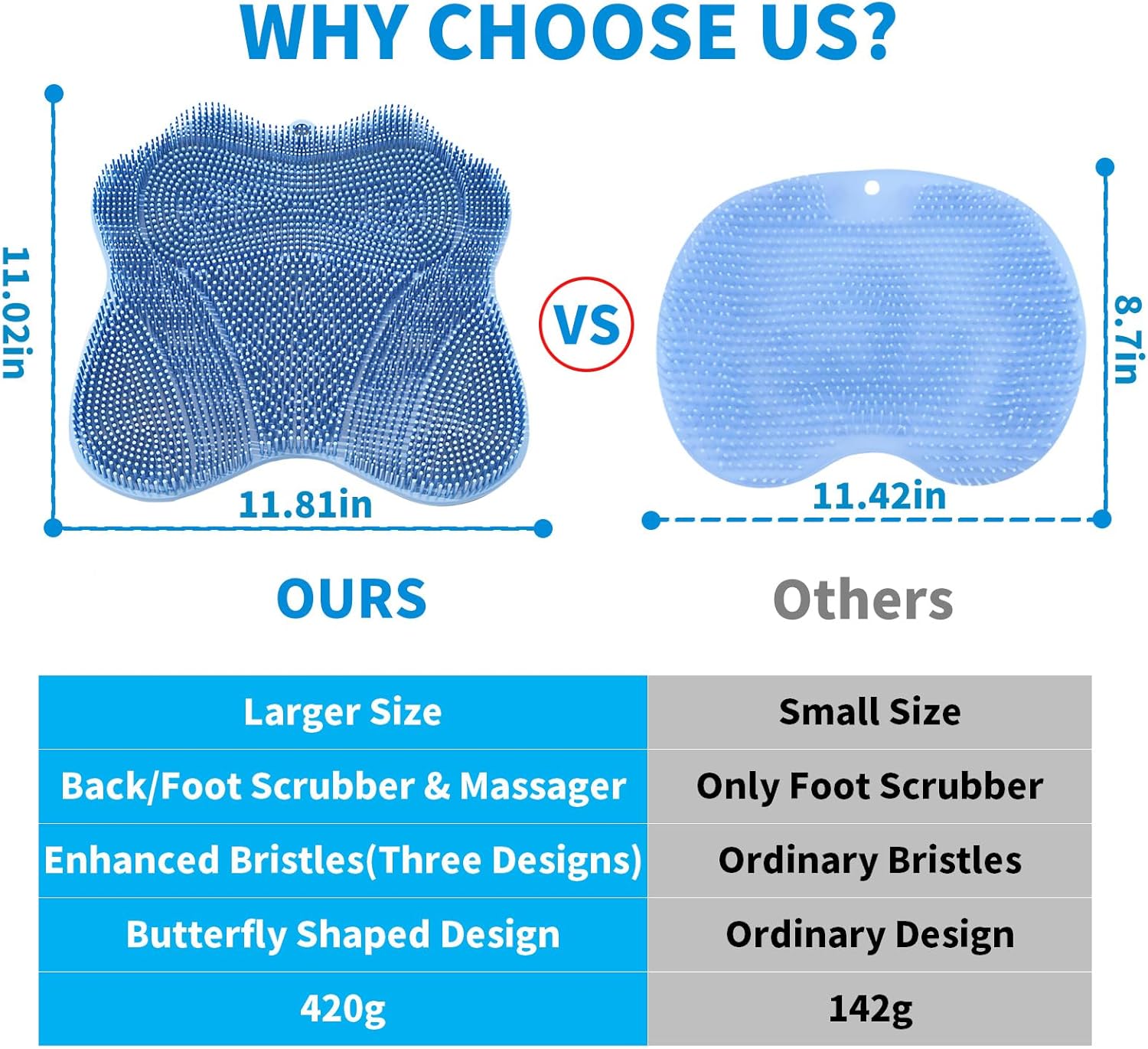 - [LARGE BUTTERFLY FORM DESIGN]: Experience total back & body care with our Premium back & foot scrubber in shower(11.81" W x 11.02" L) outperforms regular silicone back scrubbers with its spine-hugging butterfly shape â engineered for full-back contact that glides across every curve, delivering deep exfoliation + invigorating massage.