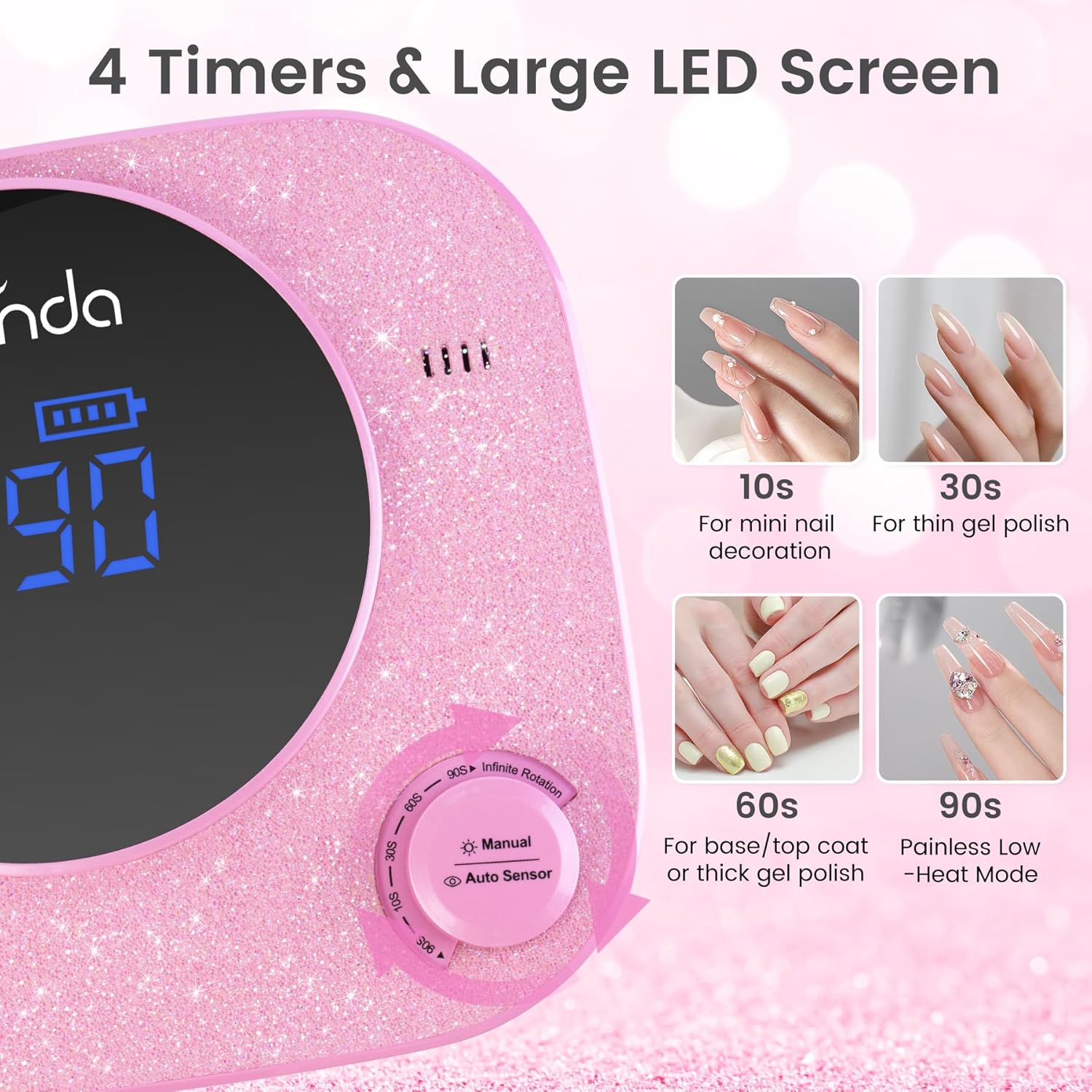 Lavinda 54W UV LED Nail Lamp, Professional UV Light for Gel Nails Rechargeable Cordless Nail Dryer with 4 Timer Settings & Auto Sensor, Fast Curing Gel Light for Home and Salon Use Diamond Dust Design