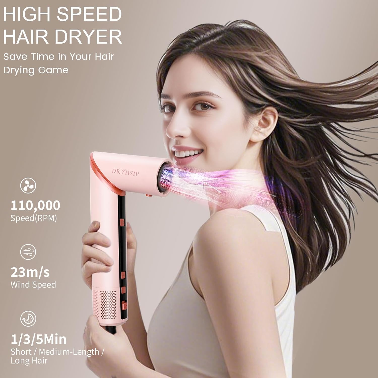 - High-Speed Performance: Featuring a powerful motor that operates at an impressive 110,000 RPM, the hair dryer delivers high-speed airflow for fast drying without excessive heat, helping protect your hair from thermal damage