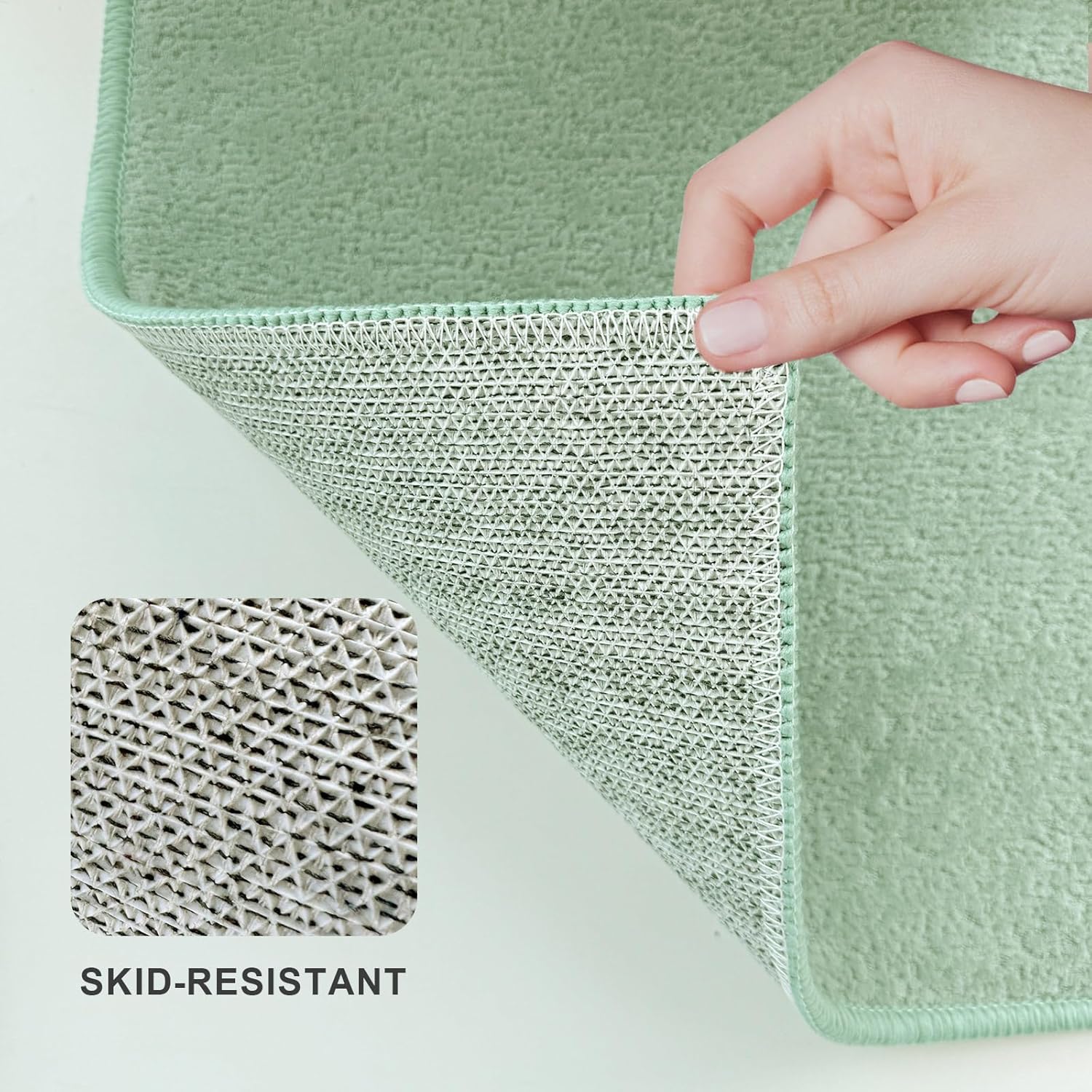 Bath Mat-Non-Slip Bathroom Floor Mats-Absorbent Quick Dry Low Pile Bathroom Rugs Fit Under Door-Bath Rug for Sink,Bathtub,Shower Room,17"×24",Sage Green