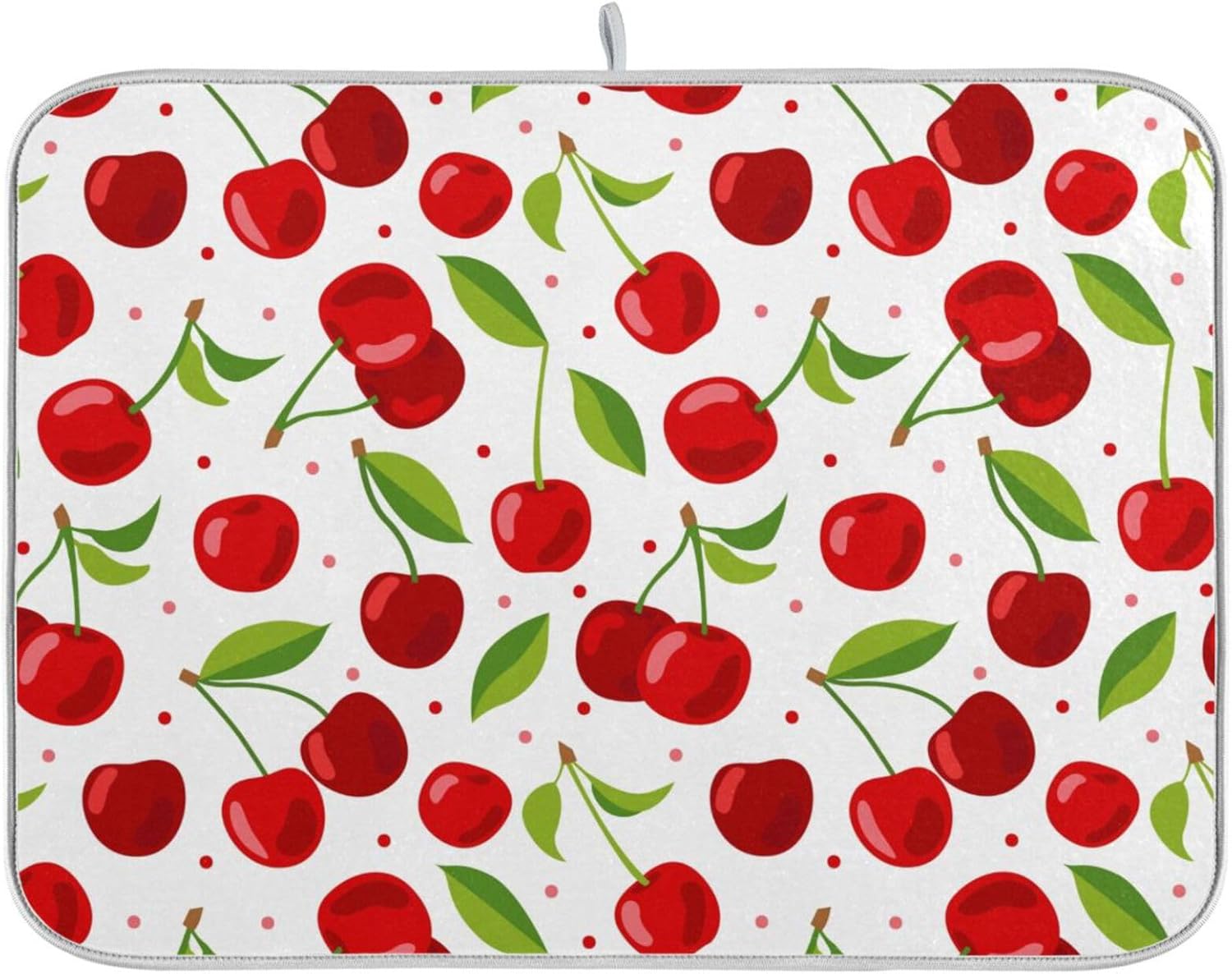 Cherry Fruits Dish Drying Mats for Kitchen Drying Mat 16 x 18 Inch Absorbent Microfiber Drying Dish Mat Machine Washable Dish Rack Pad Dish Drainer Mat