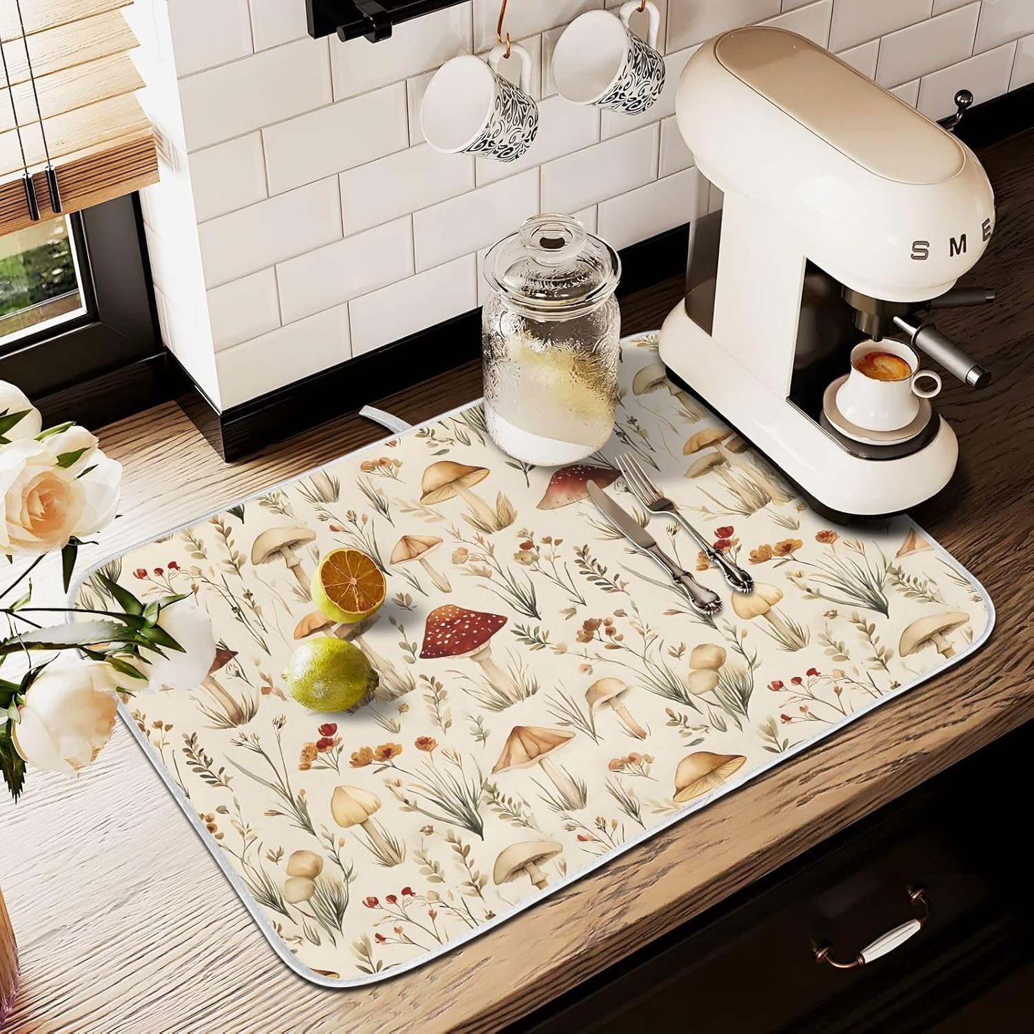 Mushroom Fall Forest Dish Drying Mats for Kitchen Counter Absorbent Microfiber Dish Drying Matt 16 x 18 Inch Draining Reusable Rack Pad