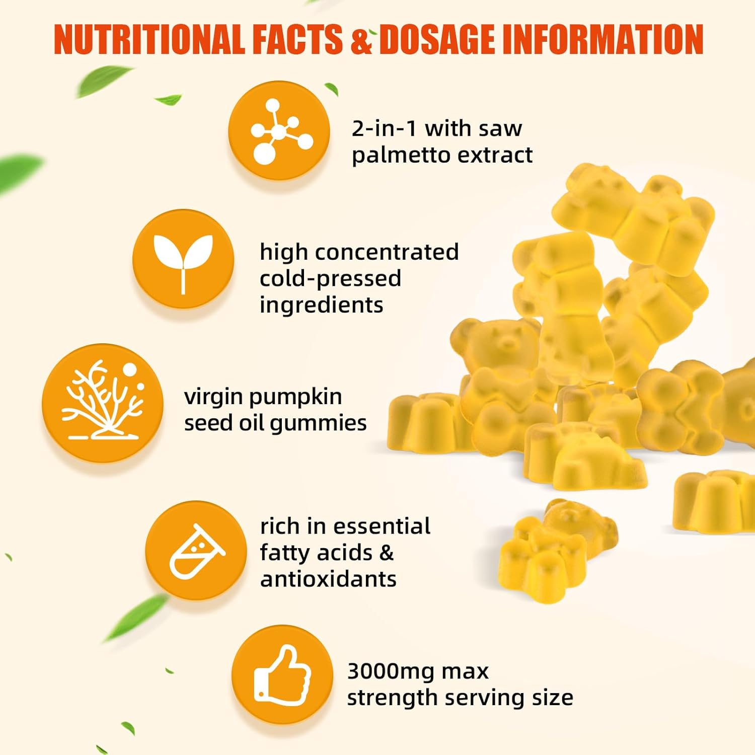 Pumpkin Seed Oil with Saw Palmetto: Pumpkin Seed Oil Gummies Extract Sugar-Free 3000mg Per Serving for Hair Growth Urinary Bladder & Prostate Health Non-GMO