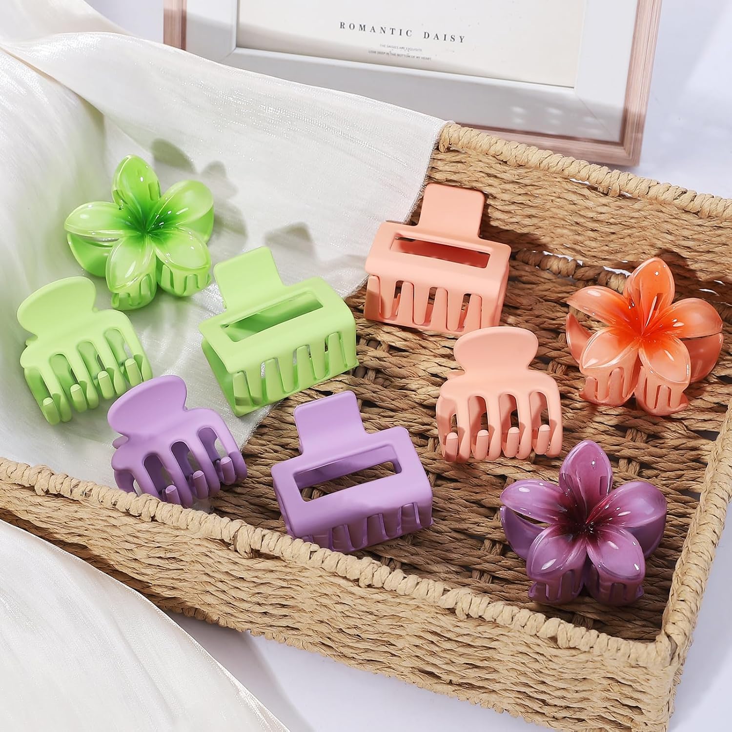 3 Styles Medium Hair Clips for Women 9 Pcs Small Claw Clips for Thin Hair Flower Hair Clips for Thick Hair Square Hair Claw Clips for Girls Hawaiian Plumeria Hair Accessories for Women (Purple)