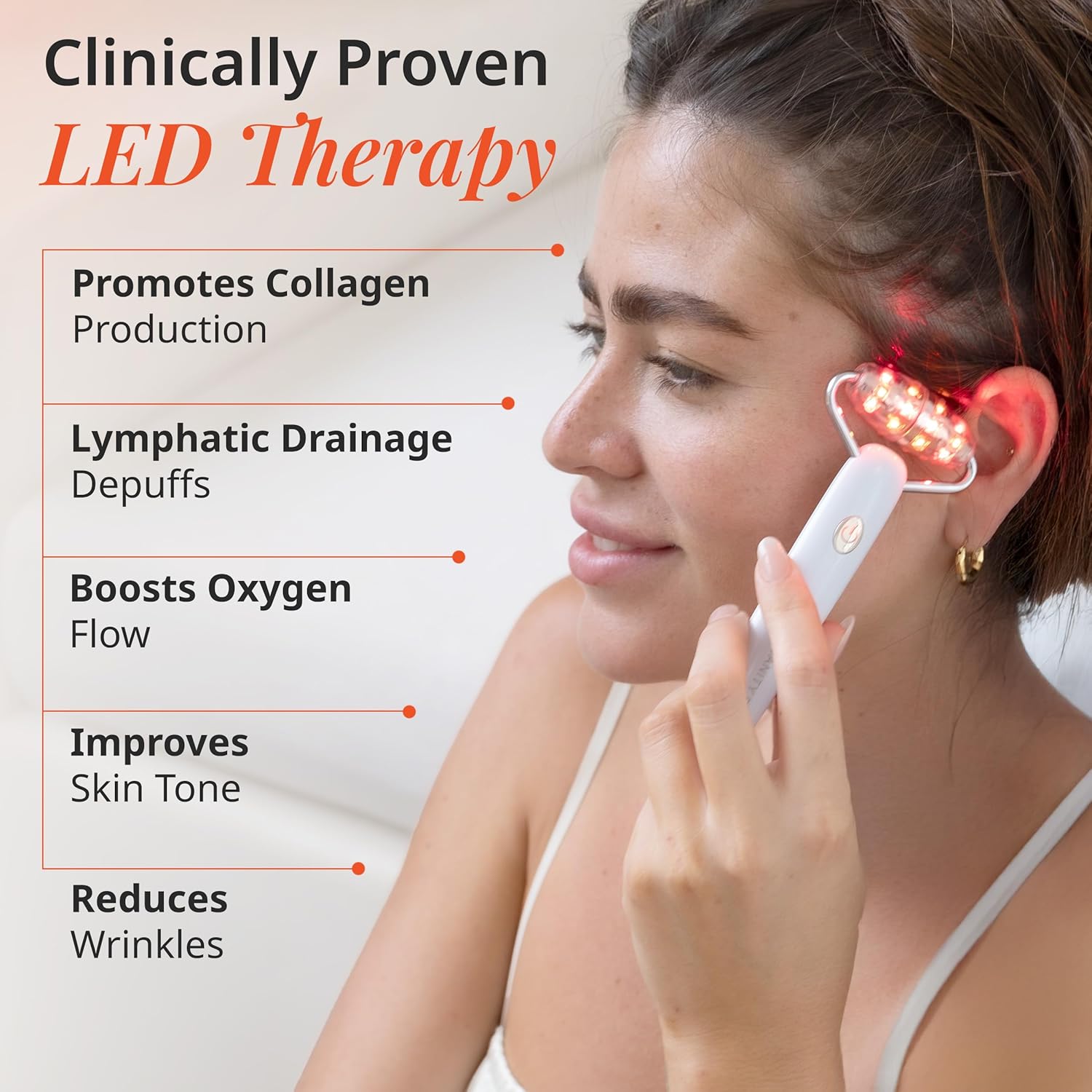 - SONIC LED FACIAL ROLLER WITH RED LIGHT THERAPY: Experience age-defying results with our patented Sonic LED Face Roller. The combination of red LED light and sonic vibration works together to reduce fine lines, wrinkles, and puffiness, delivering visible improvements.