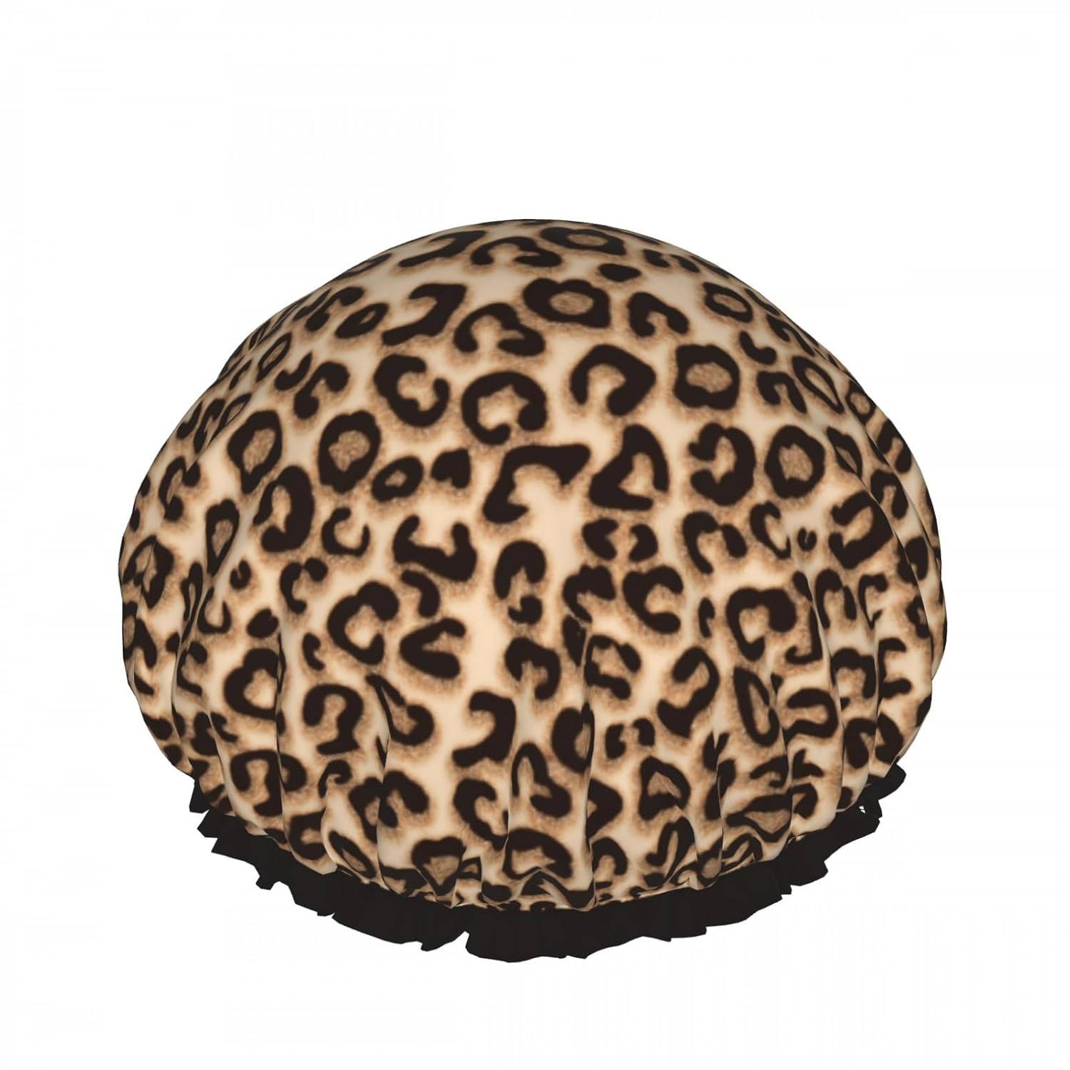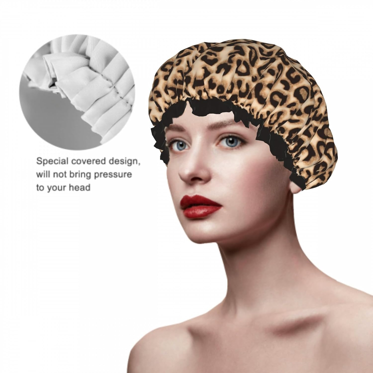 Leopard Double Layer Waterproof Shower Cap for Women Reusable Fashion Bath Cap for All Long Hair Lengths Soft Bath Shower Hat